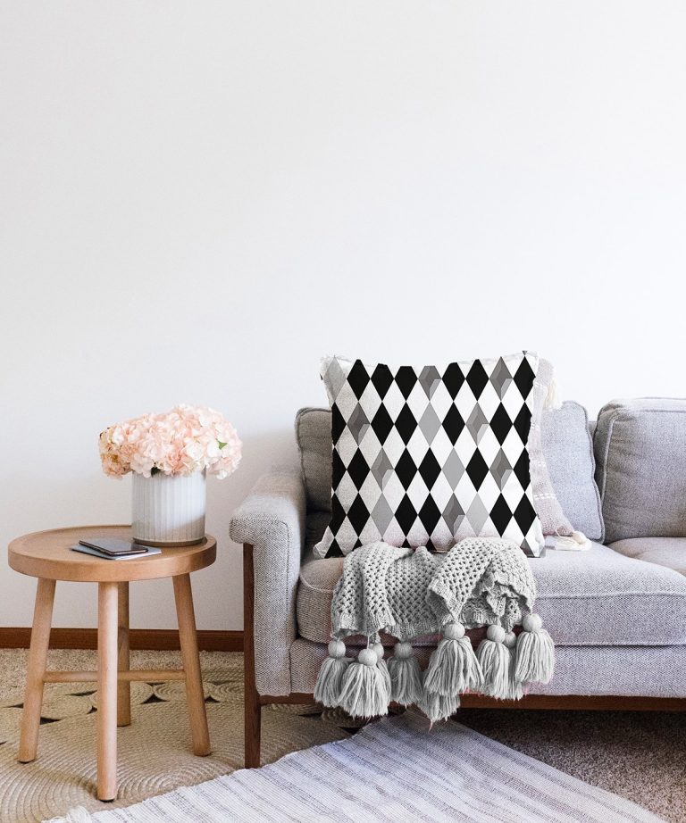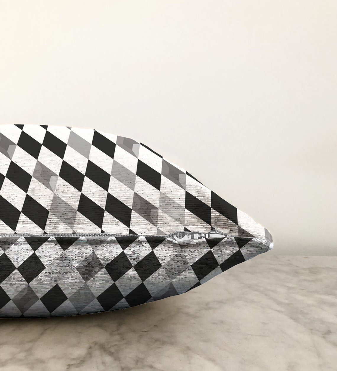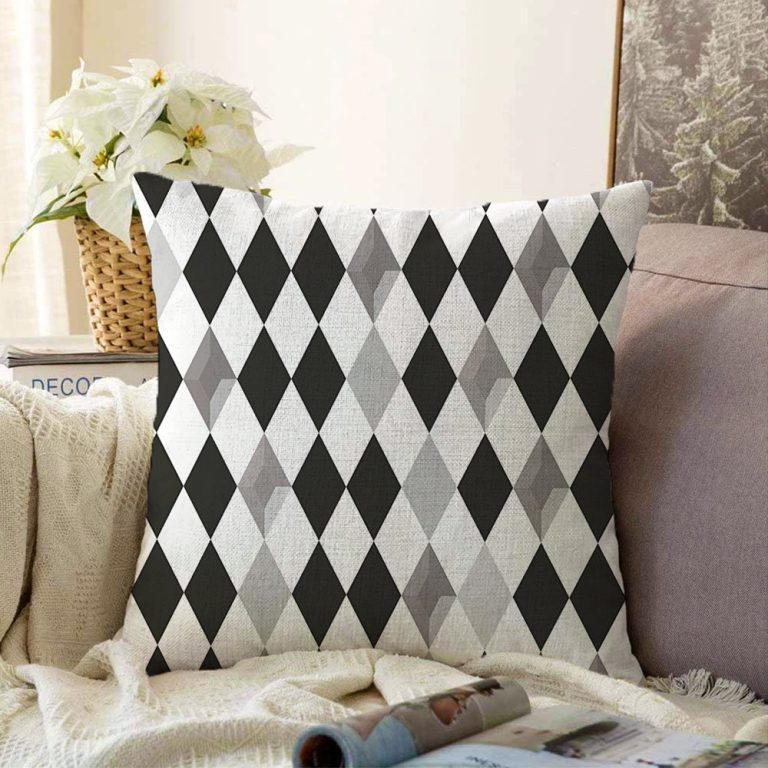 Siyah Beyaz Gri Elmas Şekilli Raşel Yastık Kırlent Kılıfı