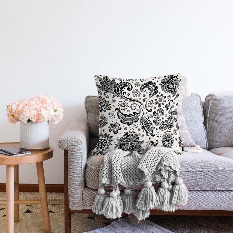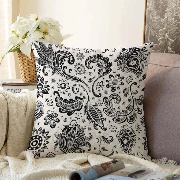 Siyah Beyaz Sanatsal Çizimli Özel Tasarım Raşel Yastık Kırlent Kılıfı