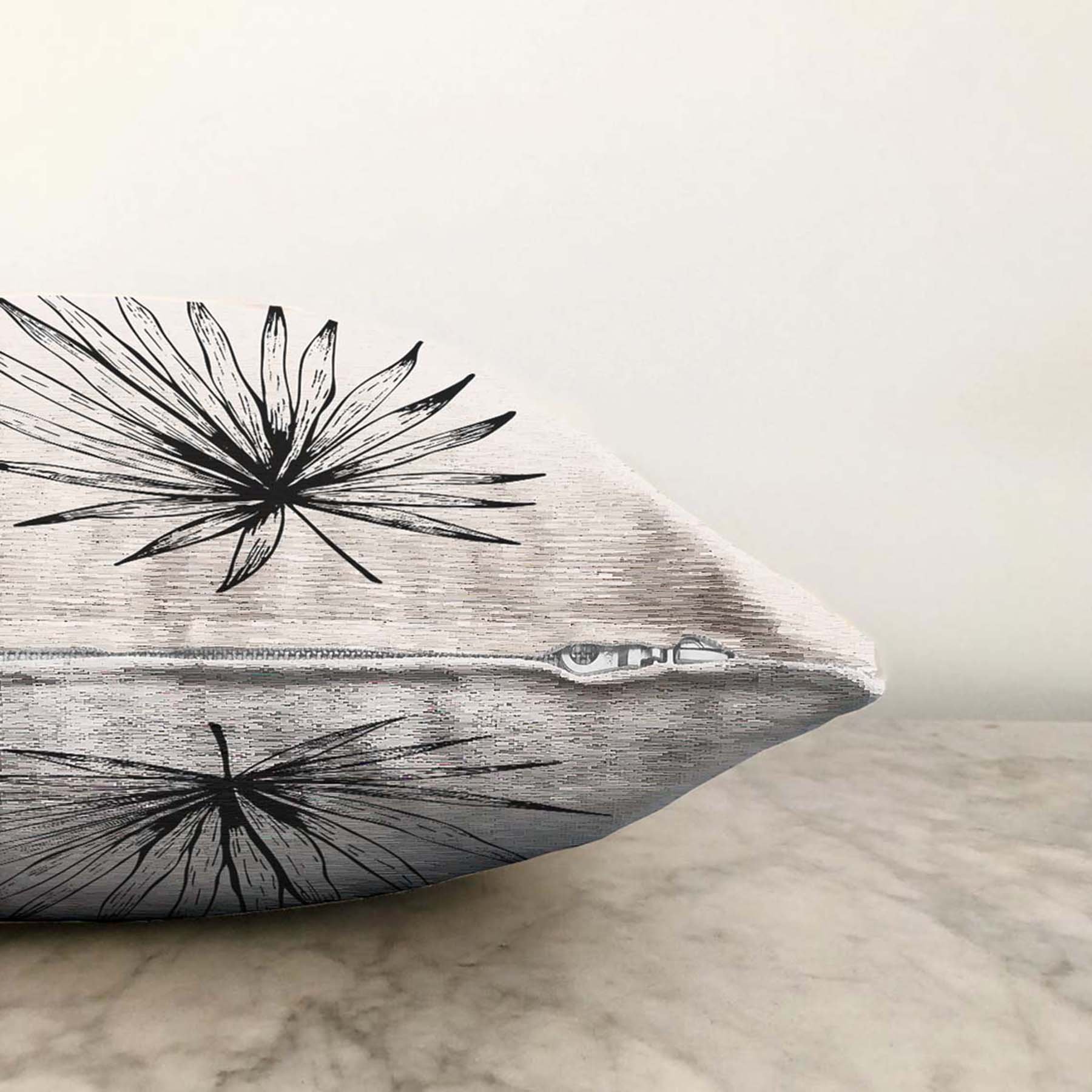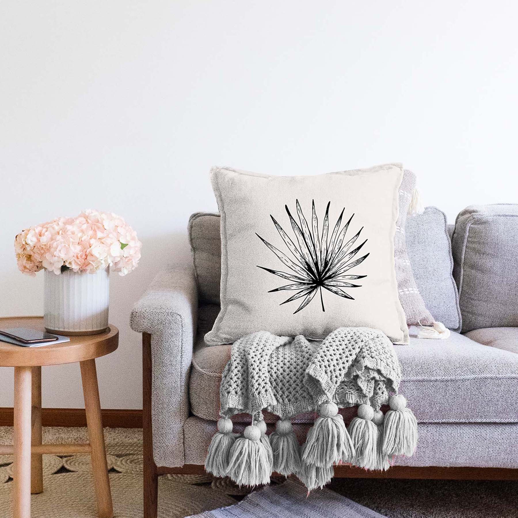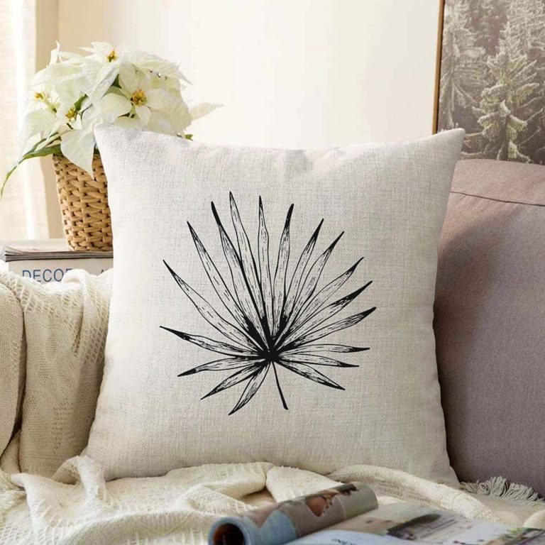 Siyah Beyaz Yaprak Tasarımlı Dekoratif Raşel Yastık Kırlent Kılıfı