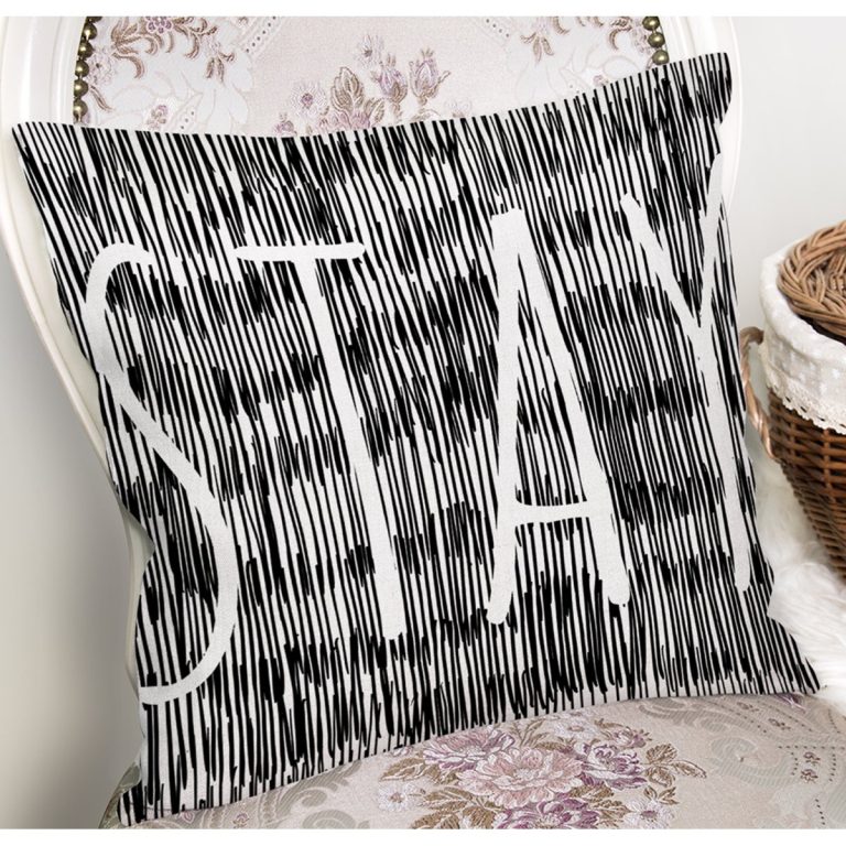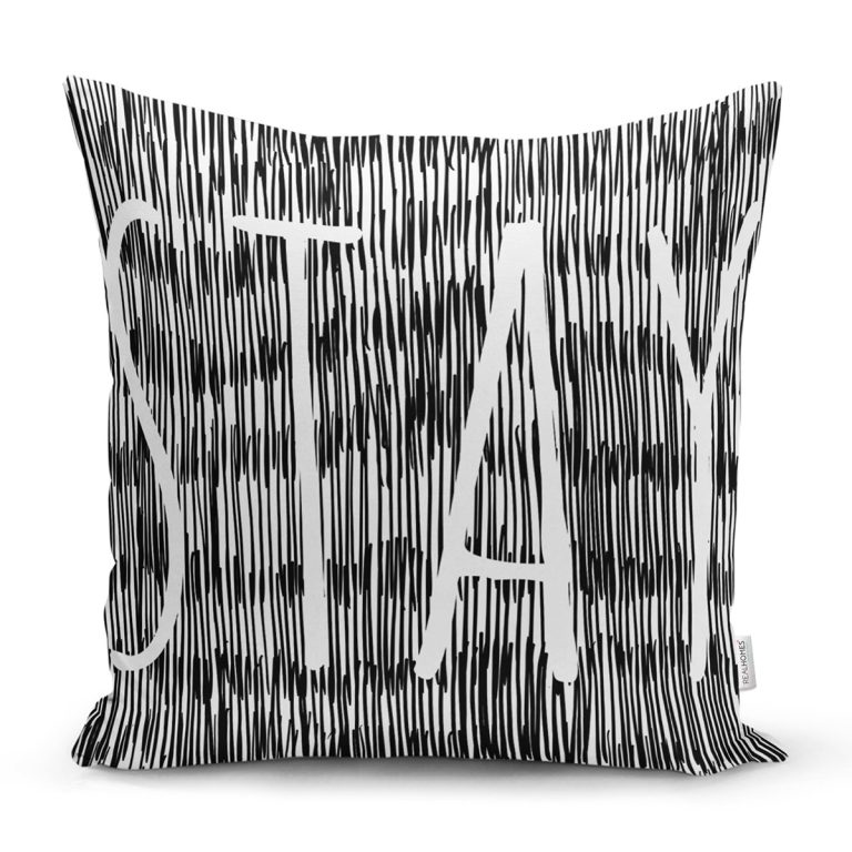 Siyah Beyaz Zeminli Onedraw Çizimli Stay Yazılı Modern Yastık Kırlent Kılıfı