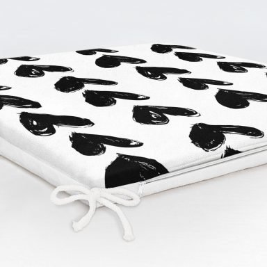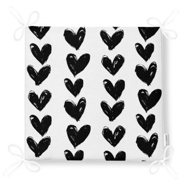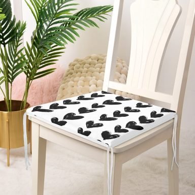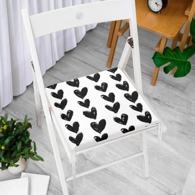 Siyah Kalp Desenli Dijital Baskılı Fermuarlı Sandalye Minderi