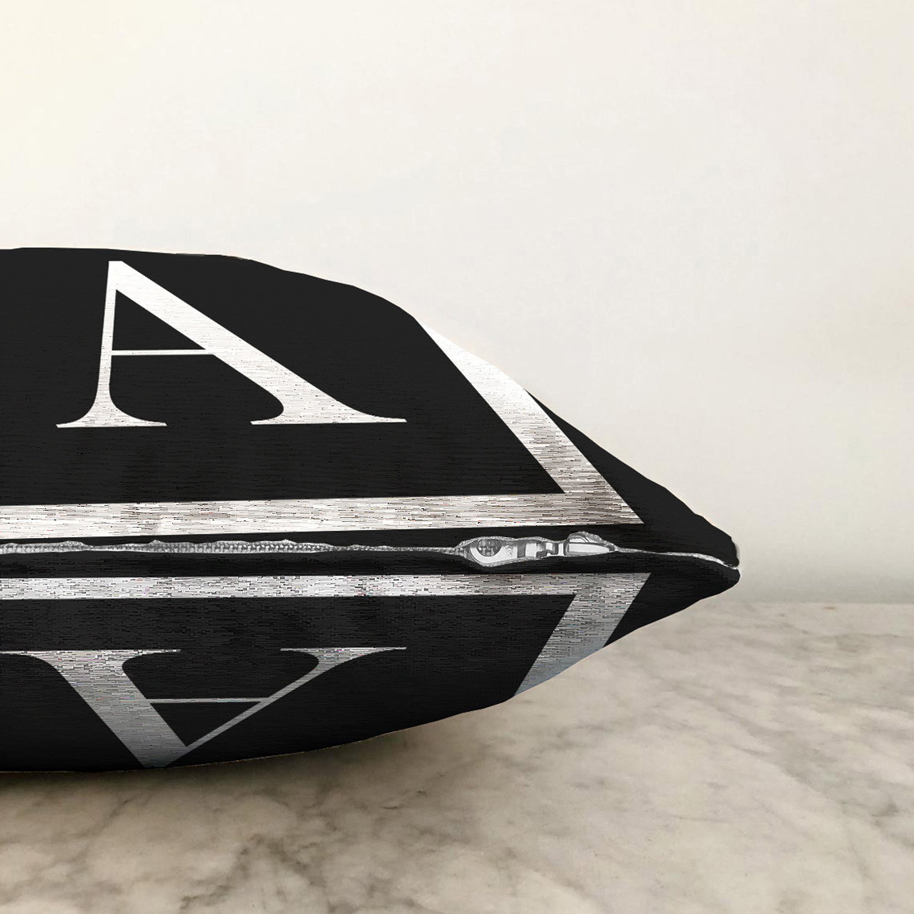 Siyah Zemin Beyaz Çerçeveli A Harfi Dijital Baskılı Raşel Kırlent Kılıfı