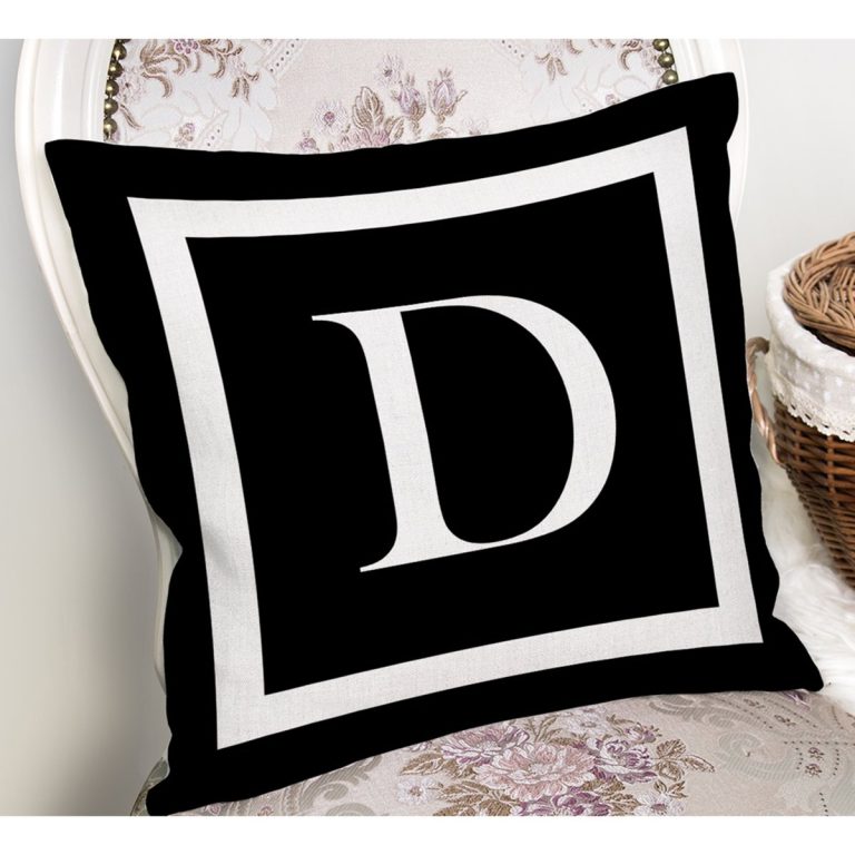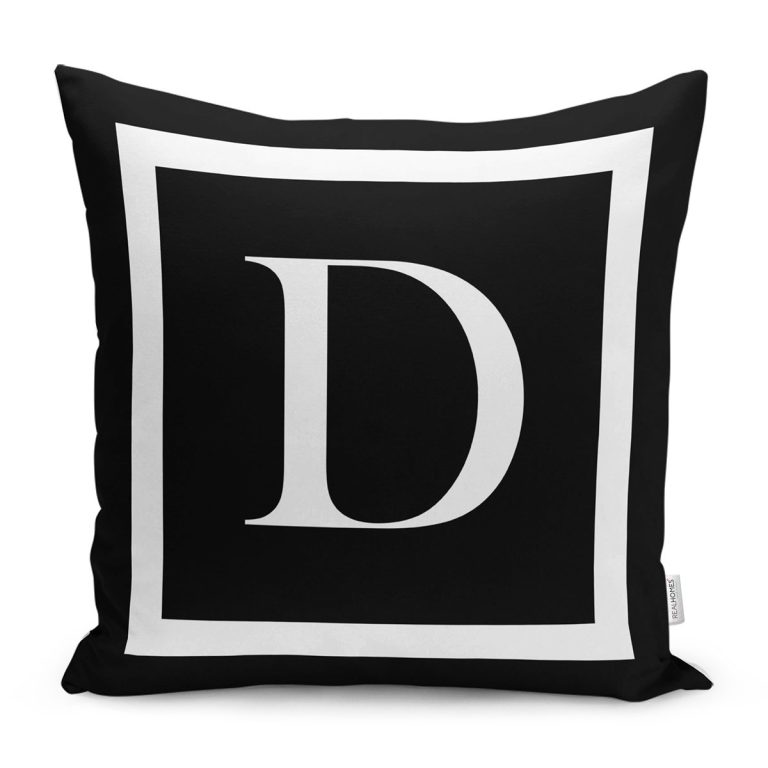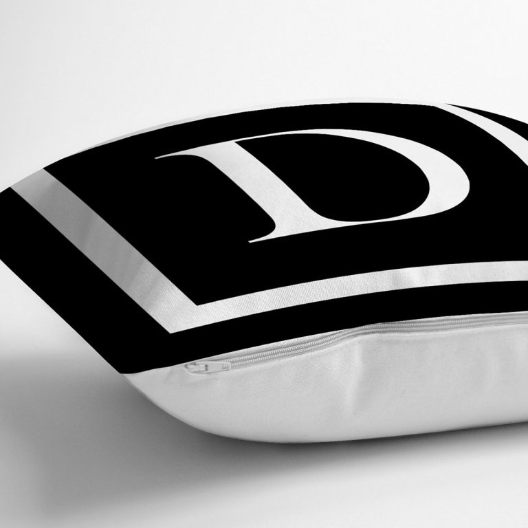 Siyah Zemin Beyaz Çerçeveli D Harfi Dijital Baskılı Kırlent Kılıfı