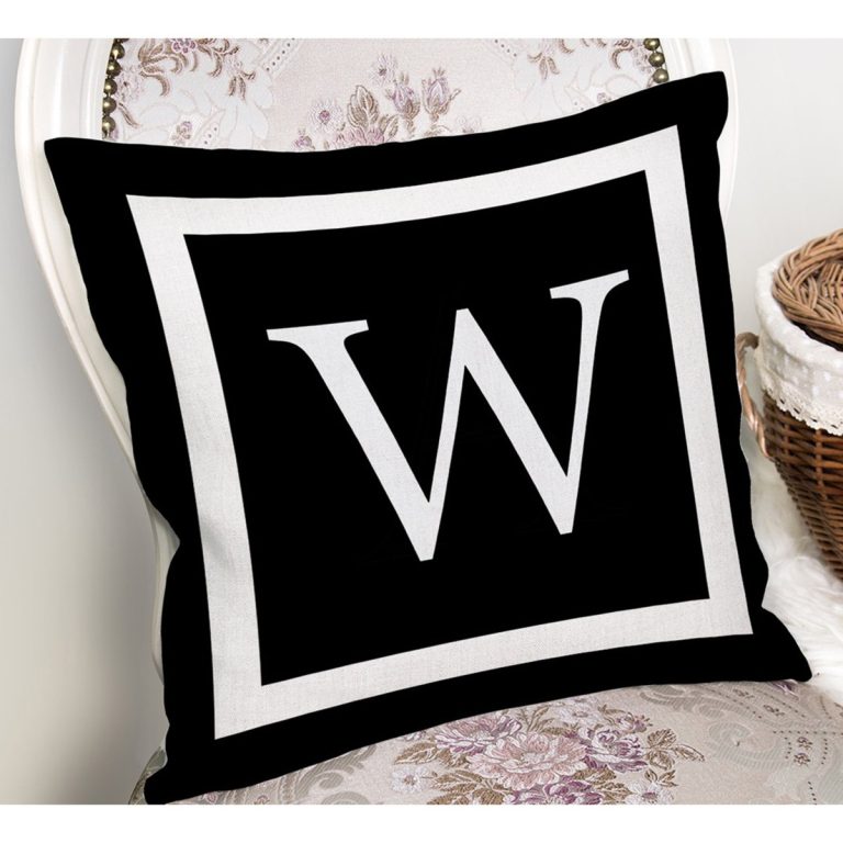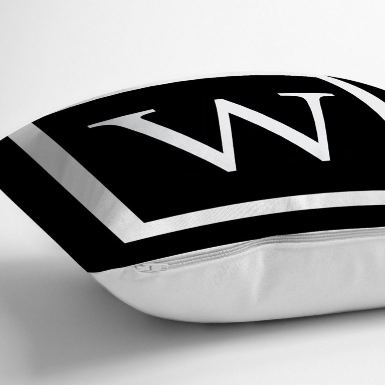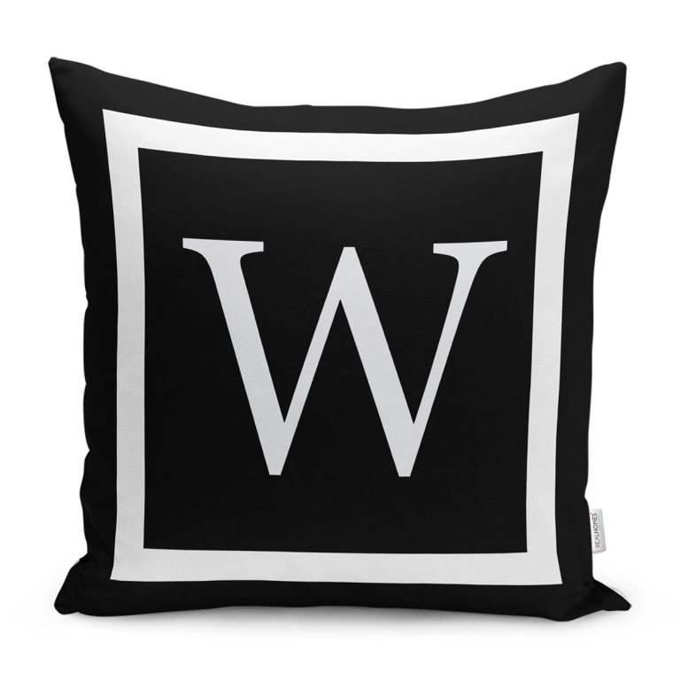 Siyah Zemin Beyaz Çerçeveli W Harfi Dijital Baskılı Kırlent Kılıfı