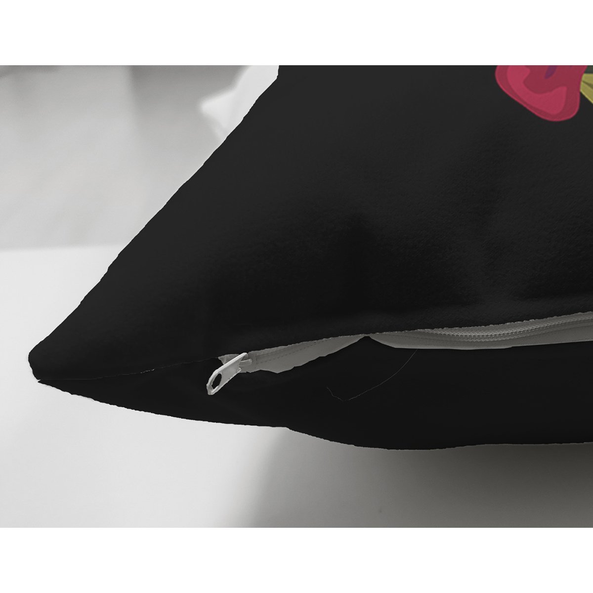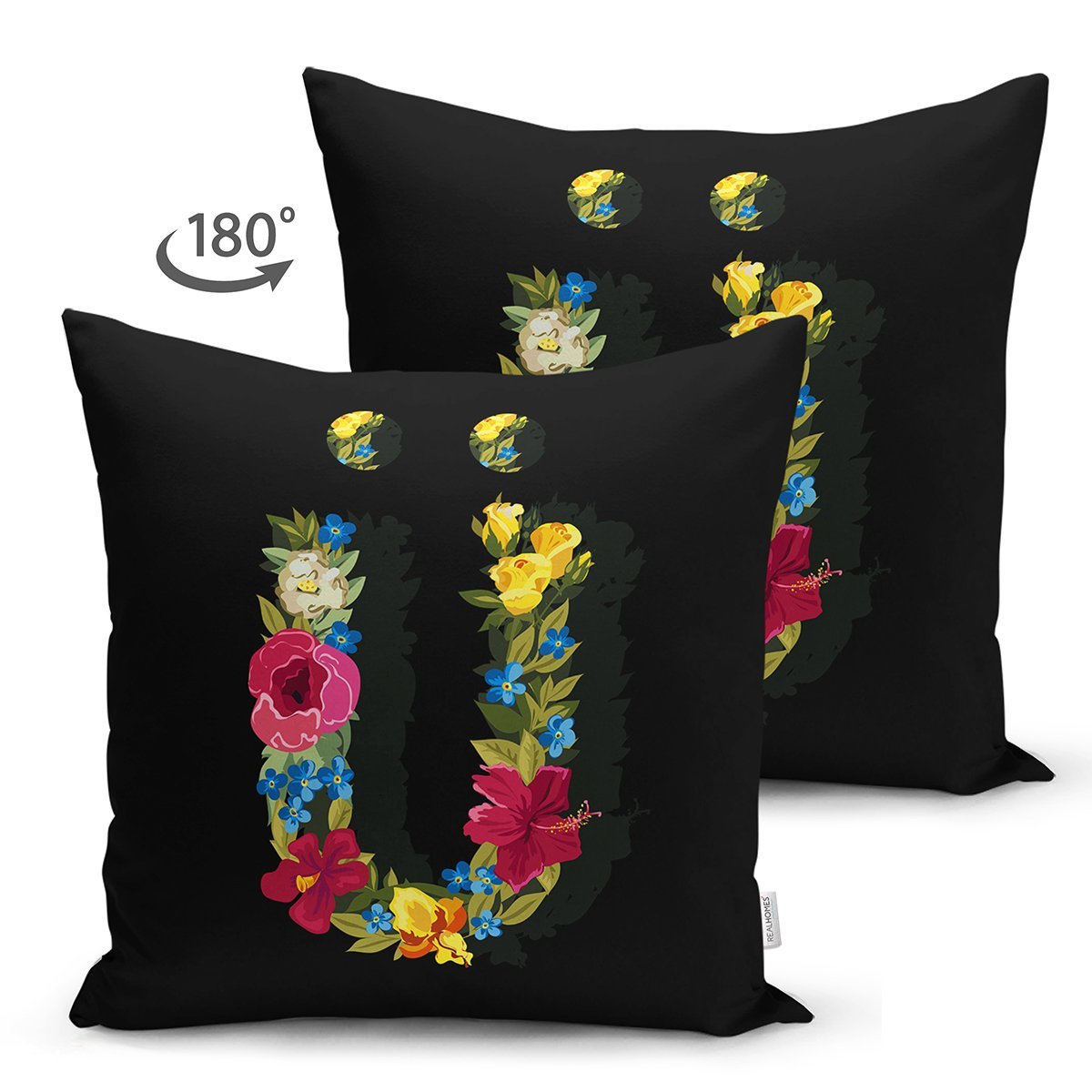 Siyah Zemin Renkli Gül Temalı Ü Harfi Özel Tasarım Modern Suet Yastık Kırlent Kılıfı