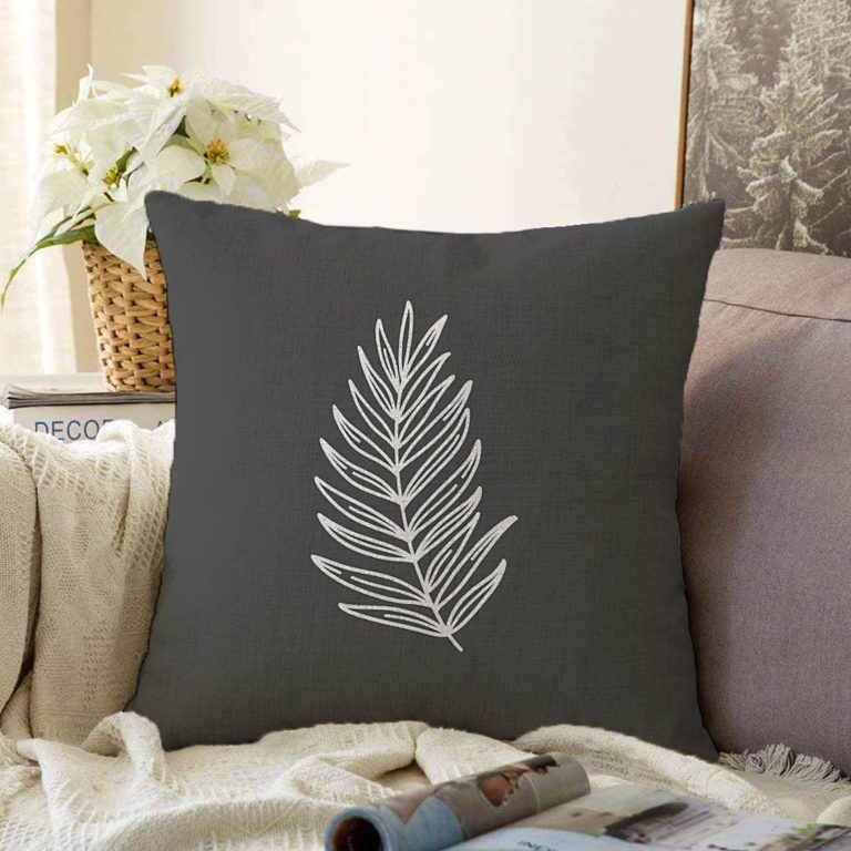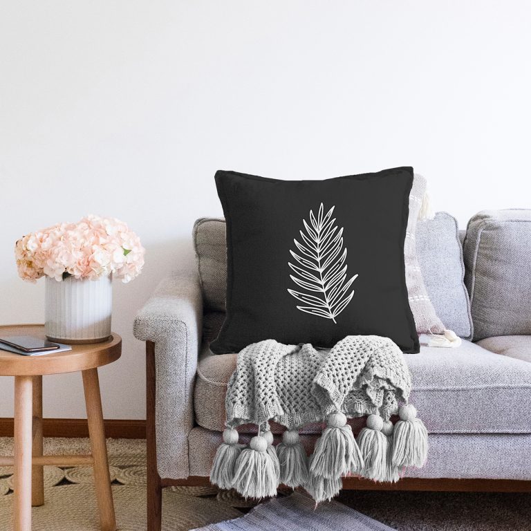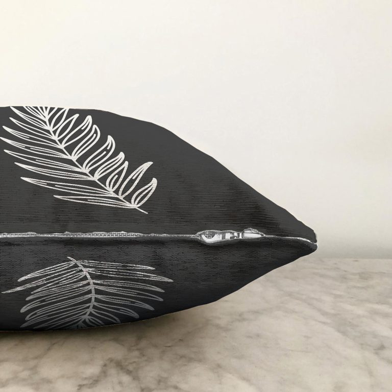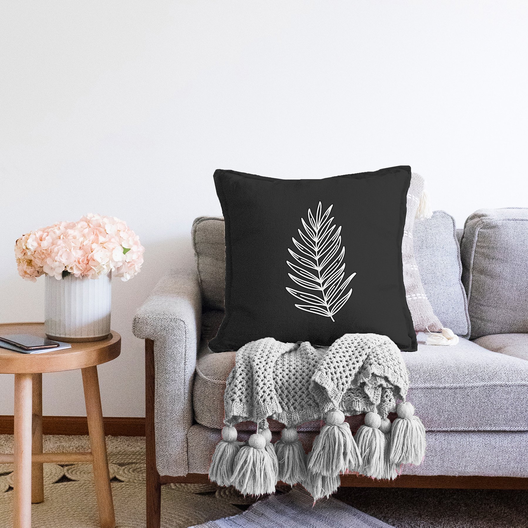 Siyah Zemin Tropik Yaprak Çizimli Modern Raşel Yastık Kırlent Kılıfı