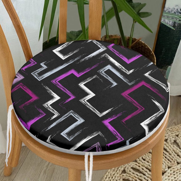 Siyah Zemin Üzerinde Renkli Geometrik Desenli Dijital Baskılı Modern Yuvarlak Fermuarlı Sandalye Minderi
