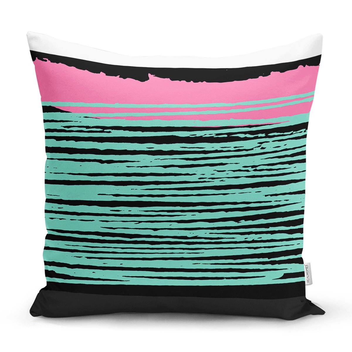 Siyah Zemin Üzerinde Renkli Geometrik Soyut Çizimli Yastık Kırlent Kılıfı