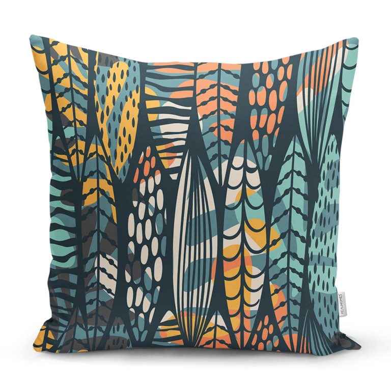 Siyah Zemin Üzerinde Yaprak Desenli Dijital Baskılı Modern Yastık Kırlent Kılıfı