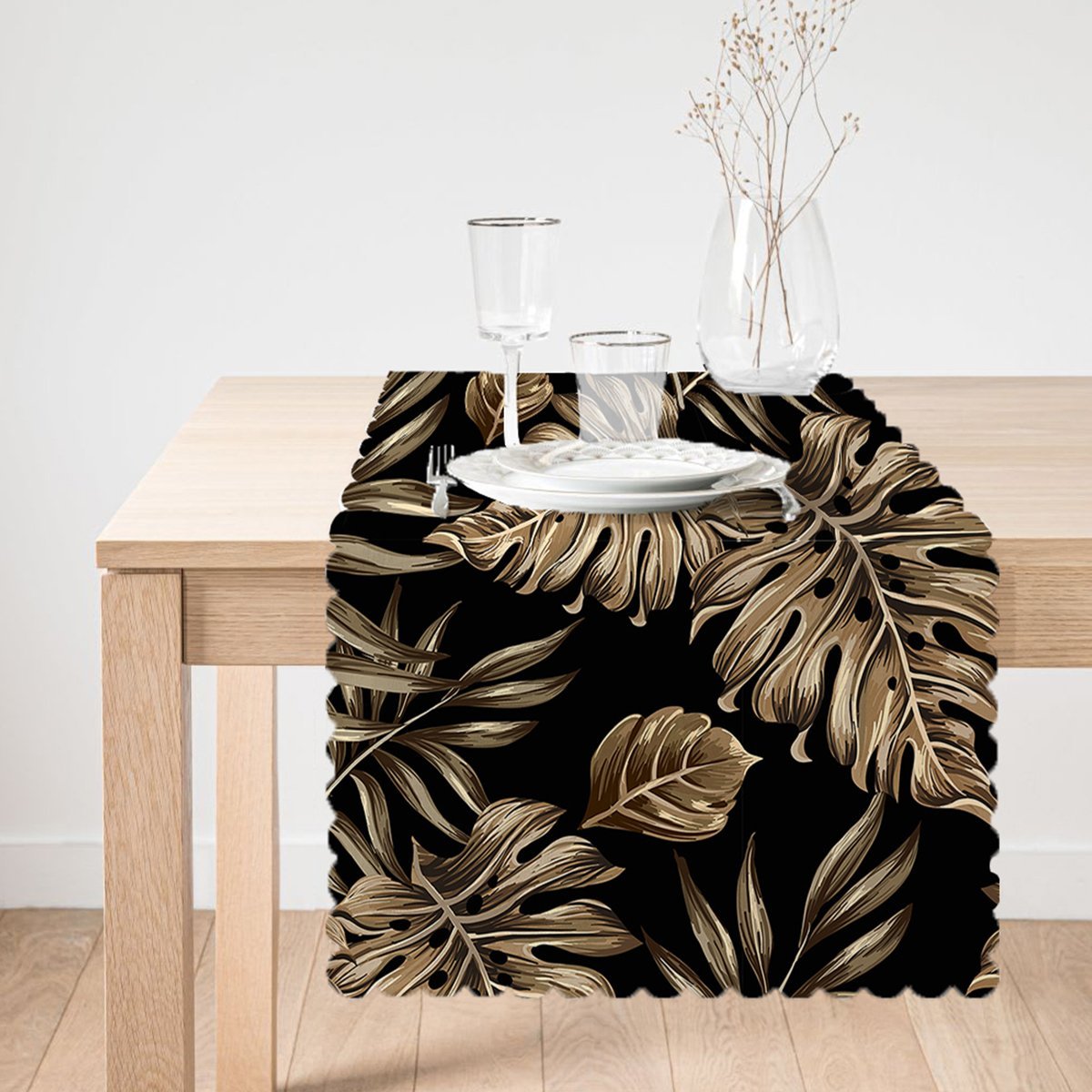 Siyah Zeminde Altın Renkli Yapraklar Desenli Özel Tasarım Runner