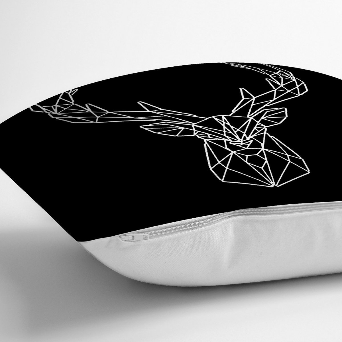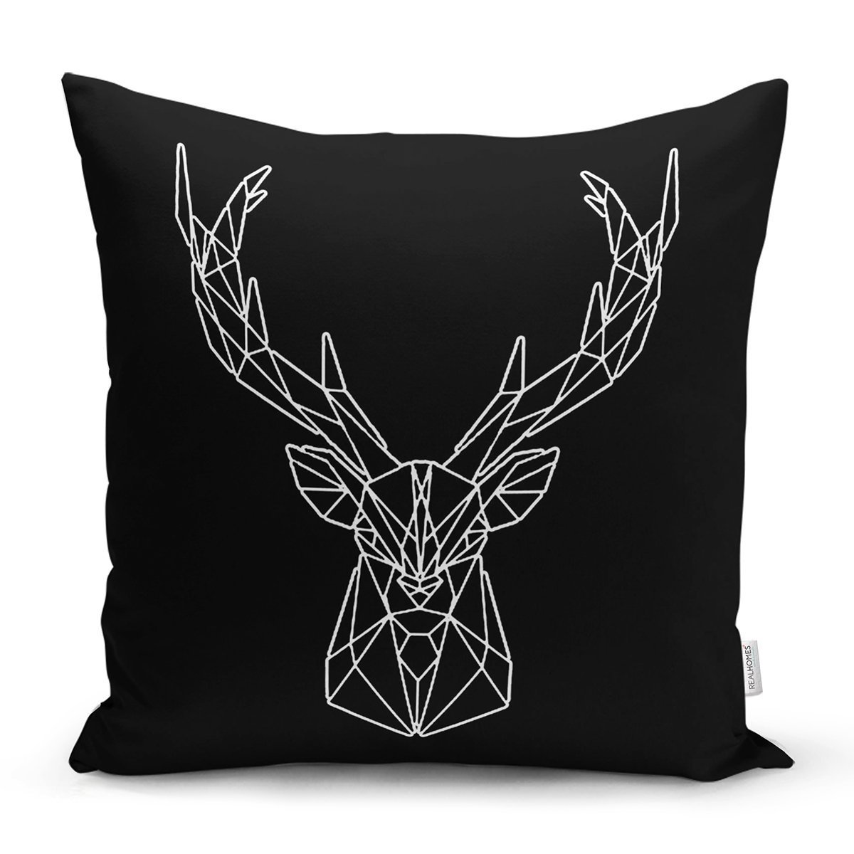 Siyah Zeminli Geometrik Geyik Çizimli Modern Yastık Kırlent Kılıfı