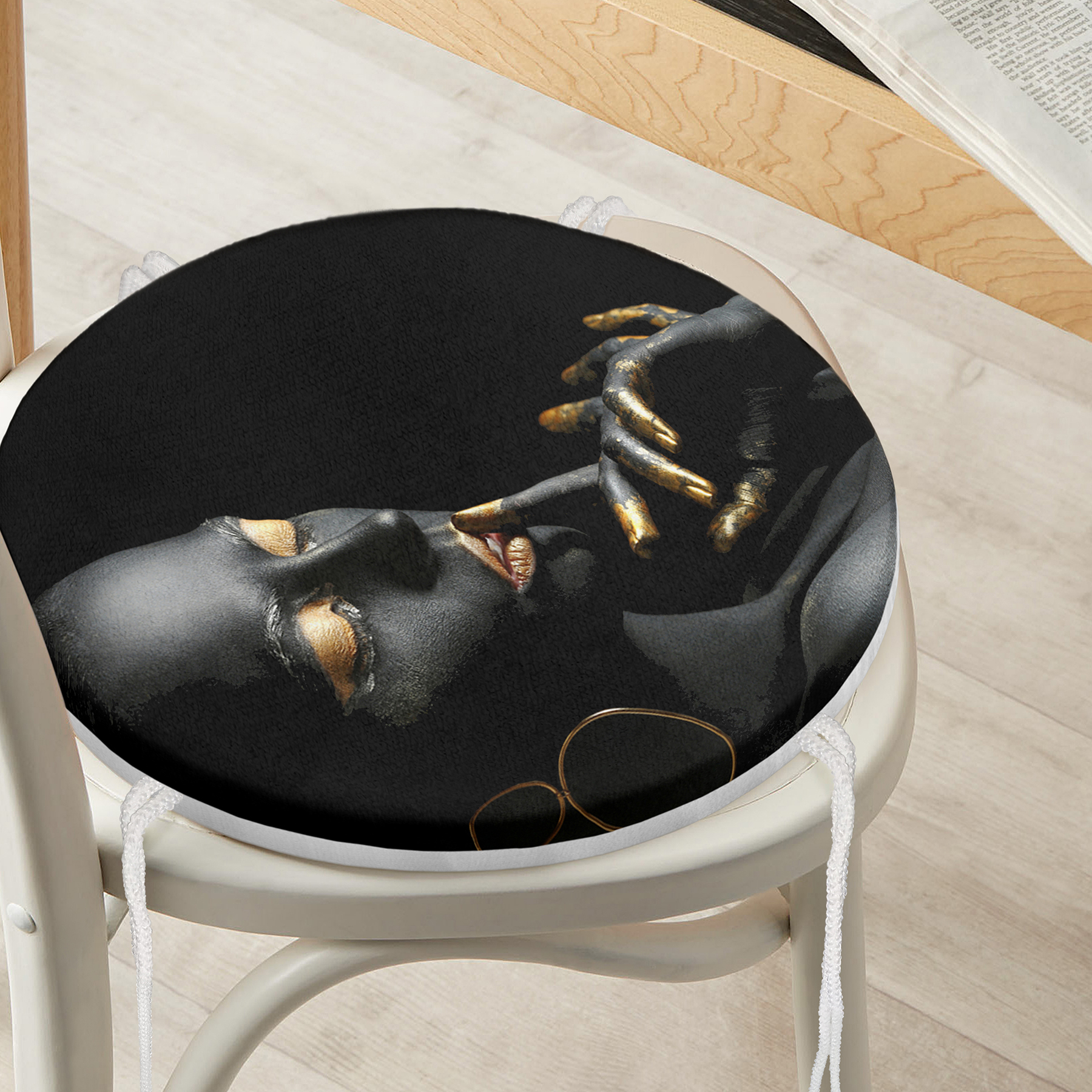 Siyahı Kadın Motifli Özel Tasarım Yuvarlak Fermuarlı Sandalye Minderi