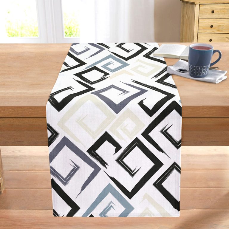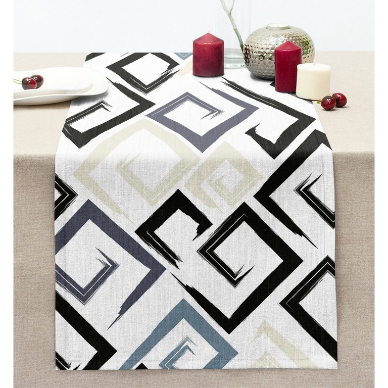 Soft Renkli Geometrik Çizimli Dekoratif Dikişli Şönil Runner