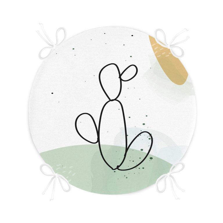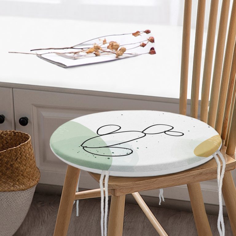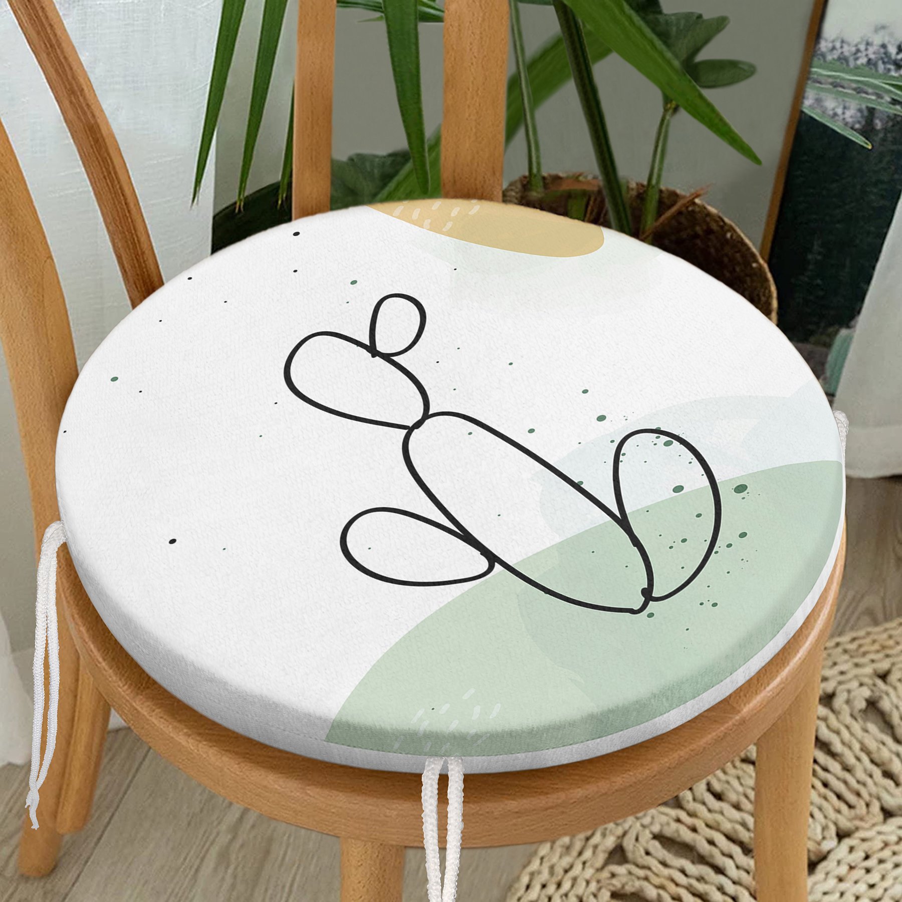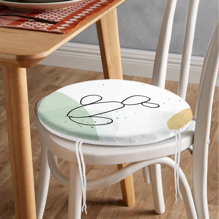 Soft Renkli Onedraw Çizimli Dijital Baskılı Modern Yuvarlak Fermuarlı Sandalye Minderi