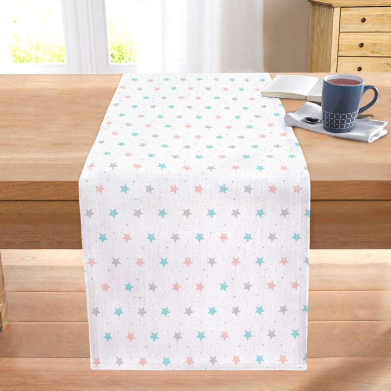 Soft Renkli Yıldız Tasarımlı Dijital Baskılı Modern Dikişli Şönil Runner