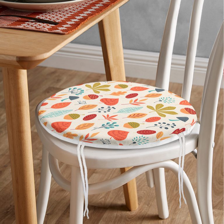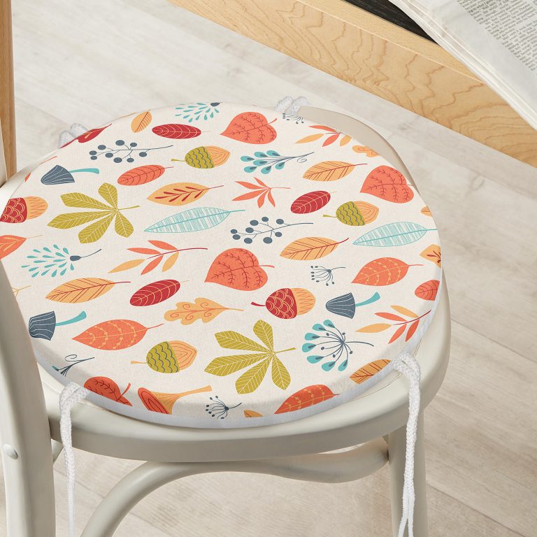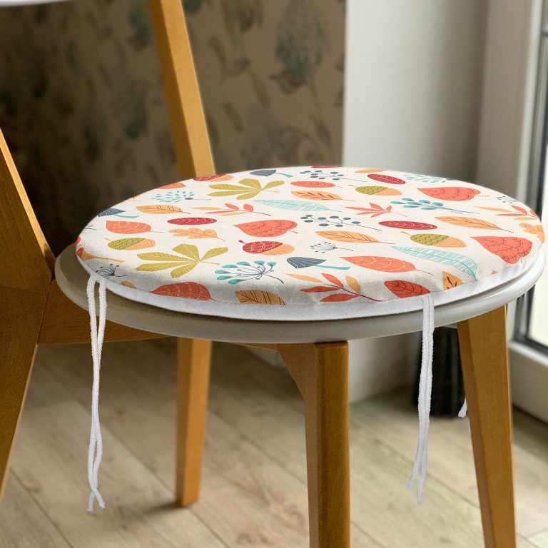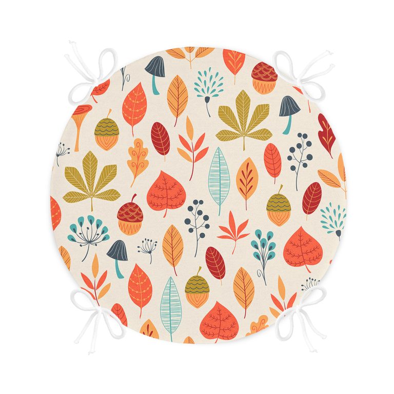Sonbahar Temalı Yaprak Figürlü Dijital Baskılı Modern Yuvarlak Fermuarlı Sandalye Minderi