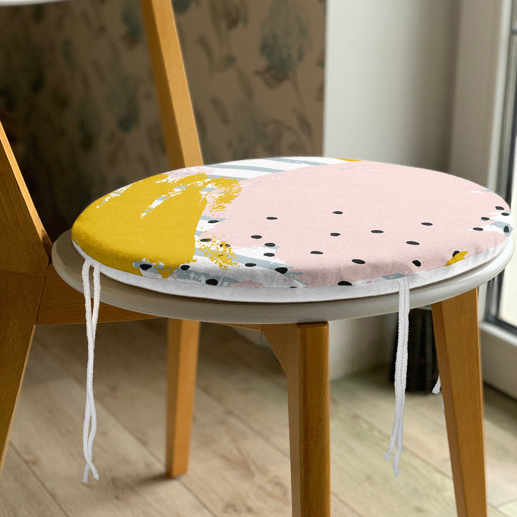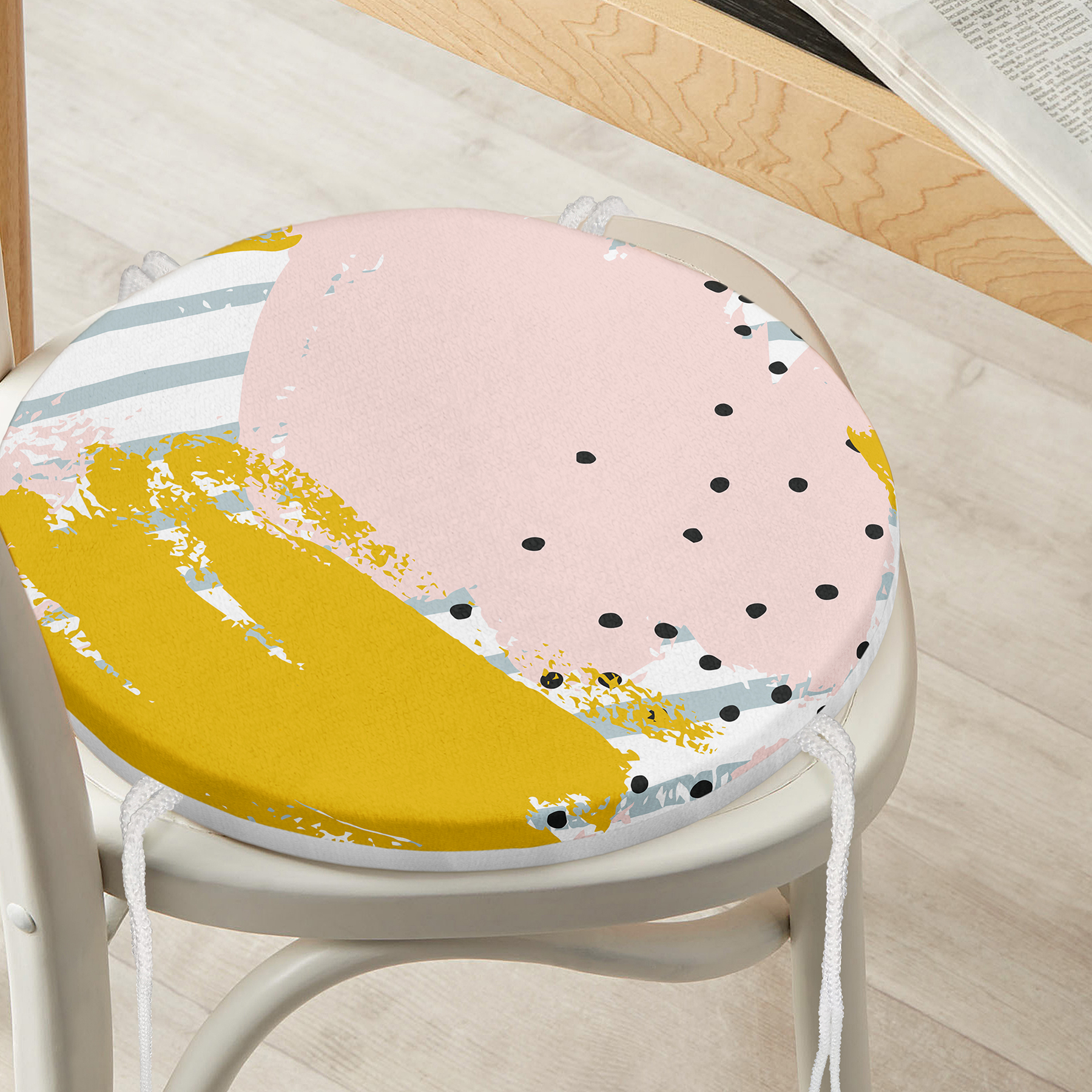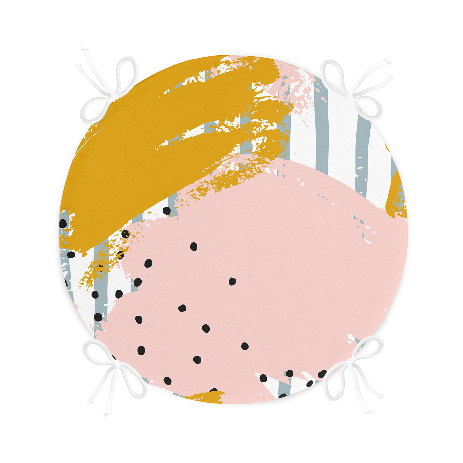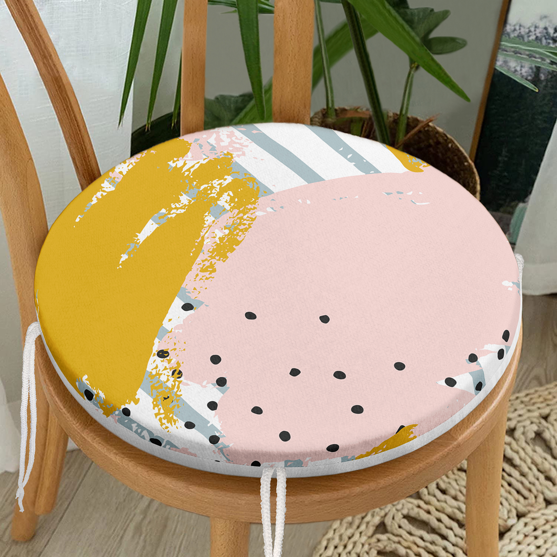 Soyut Sulu Boya Çizim Desenli Modern Yuvarlak Fermuarlı Sandalye Minderi