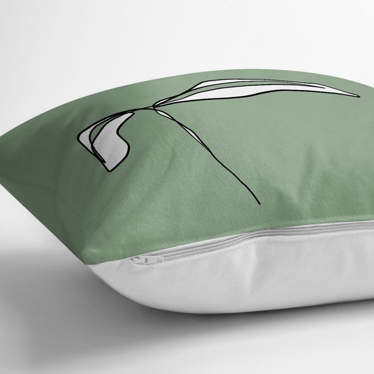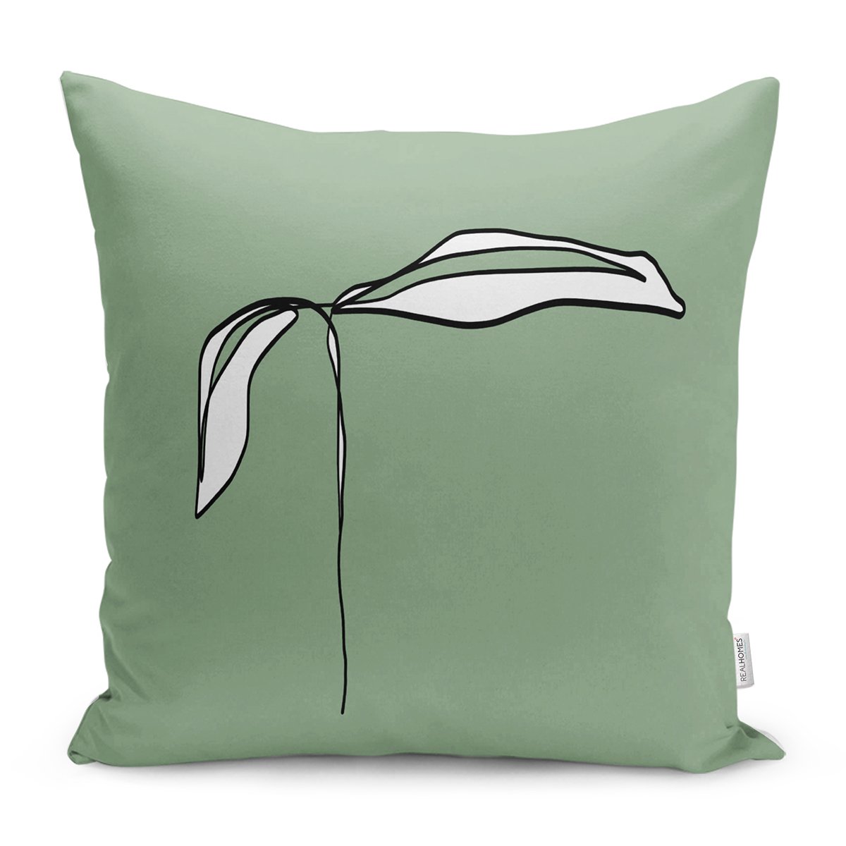 Soyut Yeşil Zeminli Onedraw Yaprak Çizimli Yastık Kırlent Kılıfı