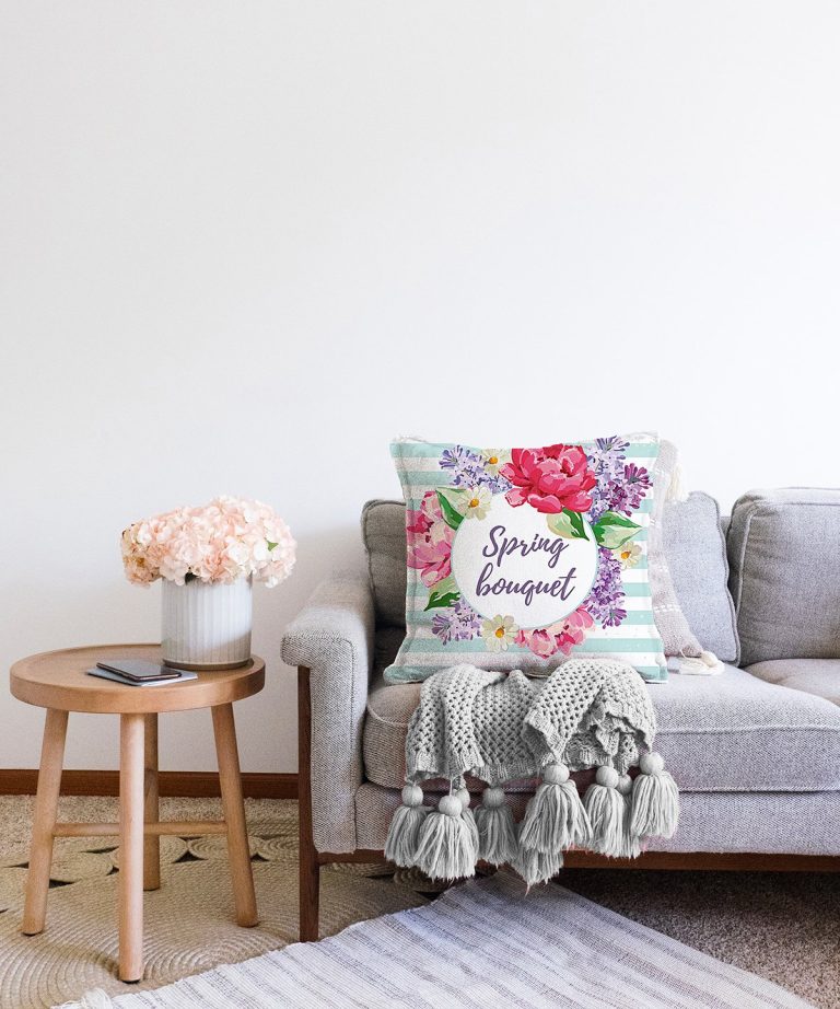 Spring Bouquet Temalı Modern Dijital Baskılı Raşel Yastık Kılıfı