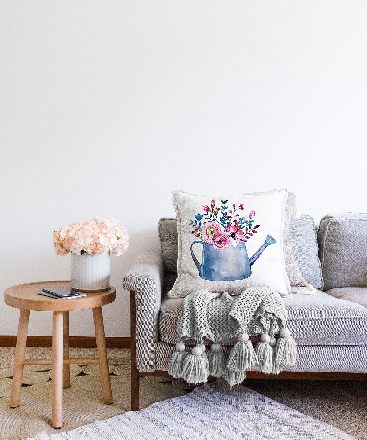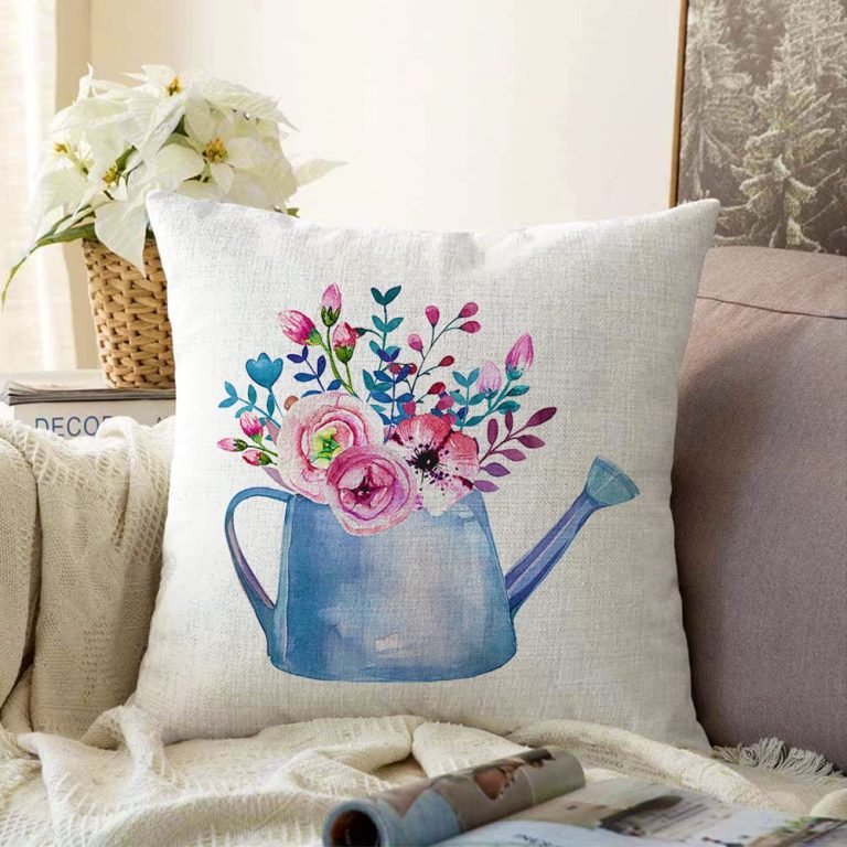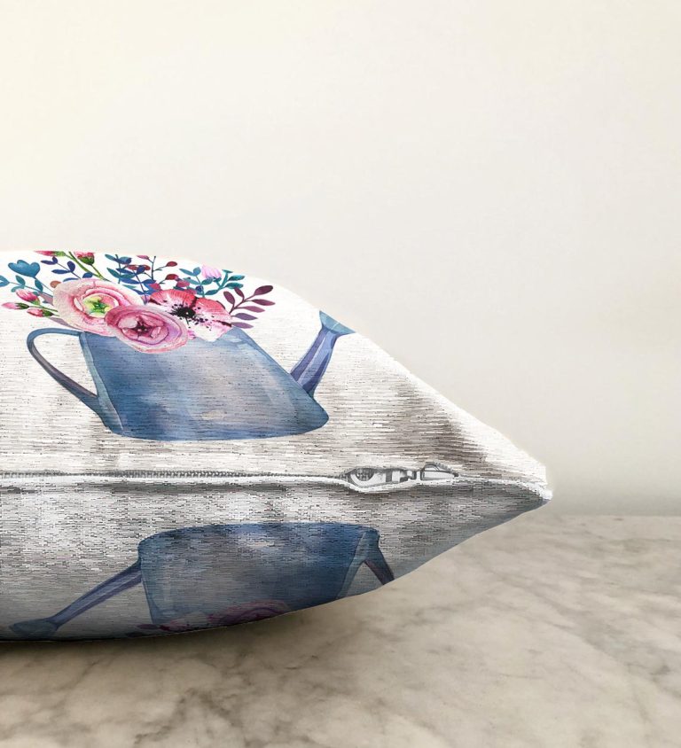 Sulu Boyalı Çiçek Desenli Dijital Baskılı Dekoratif Raşel Kırlent Kılıfı