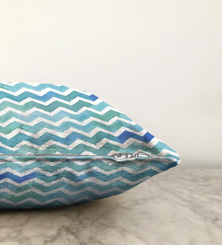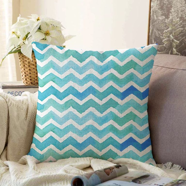 Sulu Boyalı Zigzag Desenli Dijital Baskılı Raşel Kırlent Kılıfı