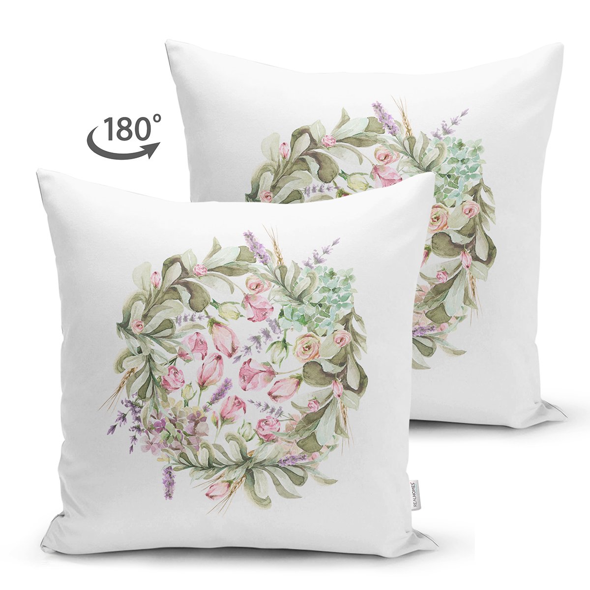 Suluboya Çizimli Çiçek Tasarımlı Dijital Baskılı Modern Süet Yastık Kırlent Kılıfı
