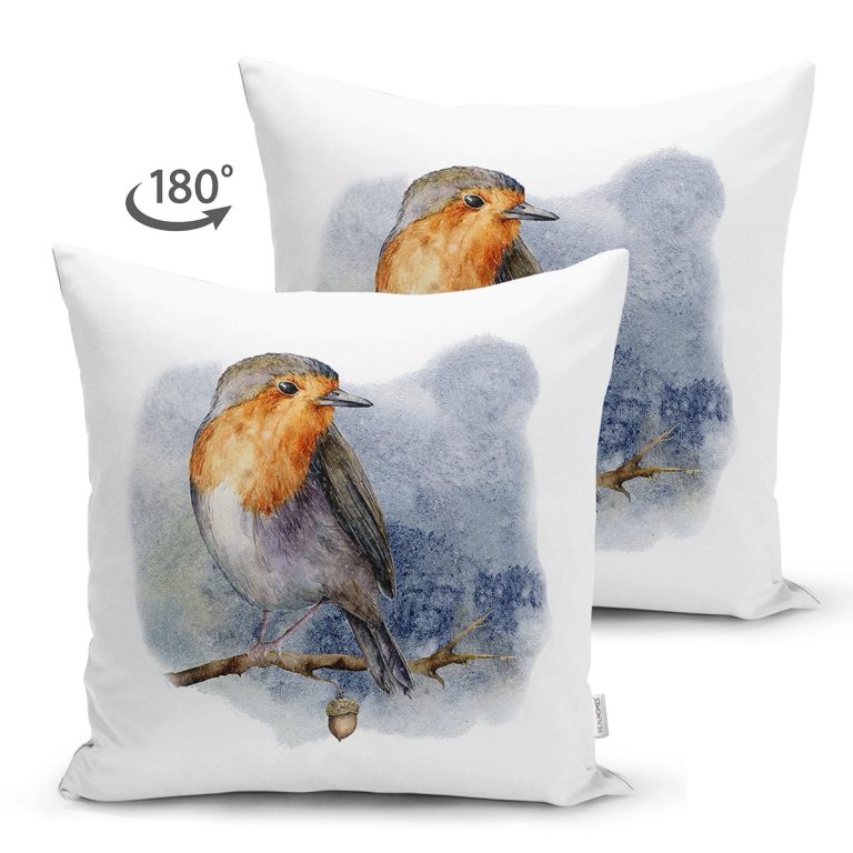 Suluboya Çizimli Kuş Tasarımlı Dijital Baskılı Dekoratif Süet Yastık Kırlent Kılıfı