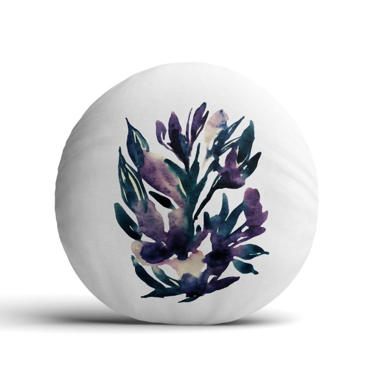 Suluboyalı Çiçek Tasarımlı Dekoratif Yuvarlak Yastık Kırlent Kılıfı