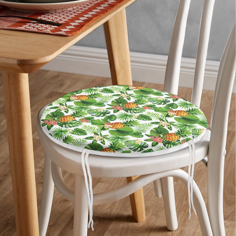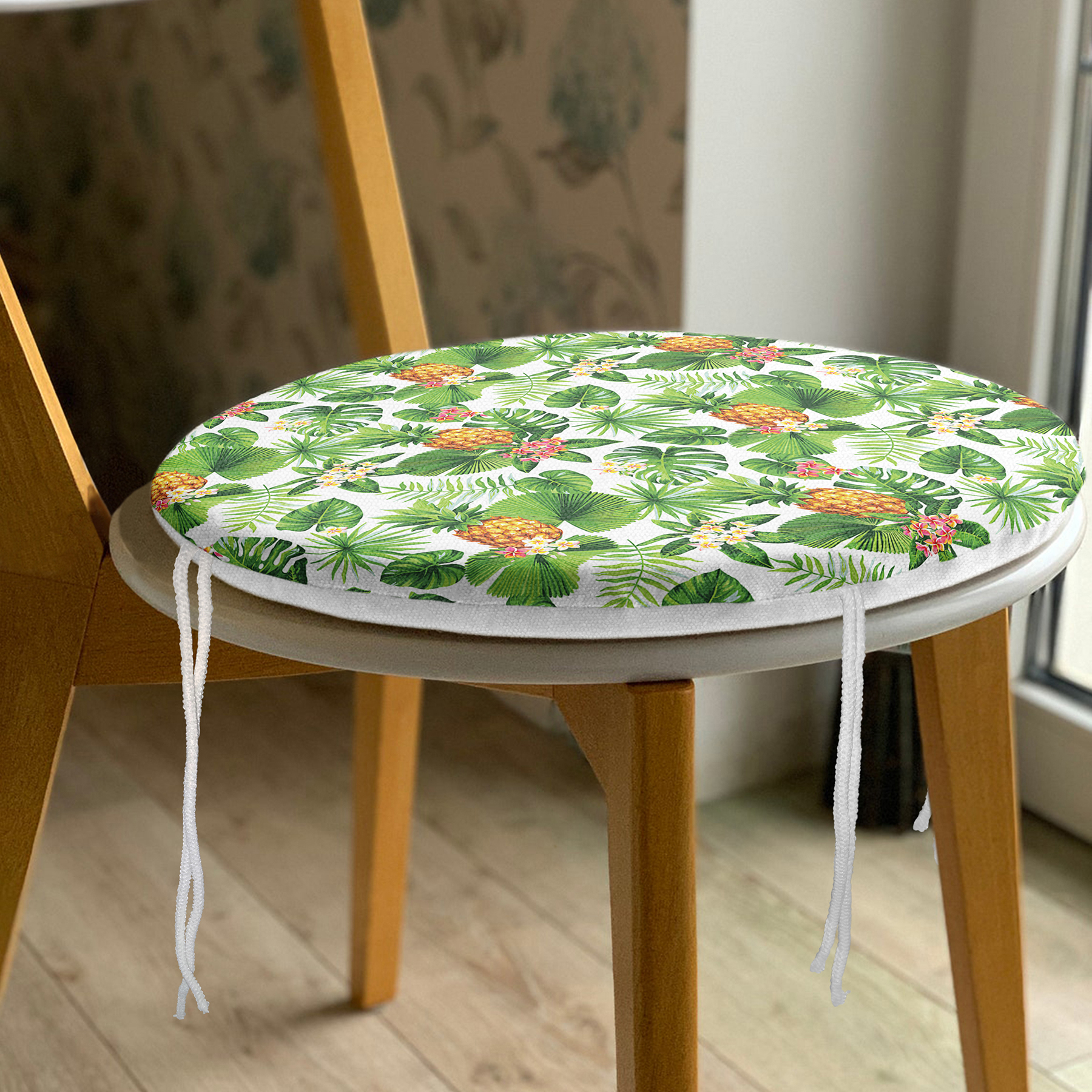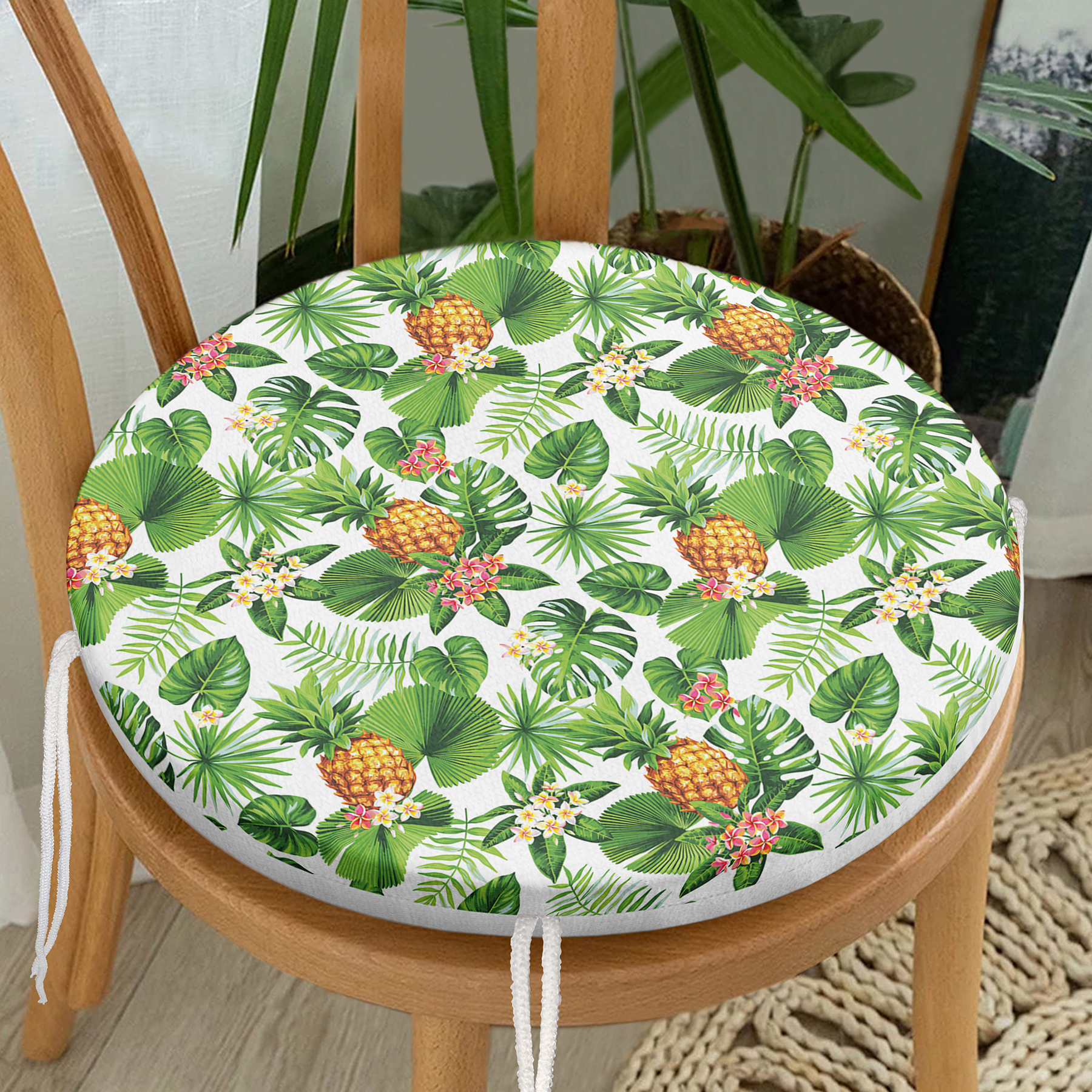 Summer Tropikal Desenli Özel Tasarımlı Yuvarlak Fermuarlı Sandalye Minderi
