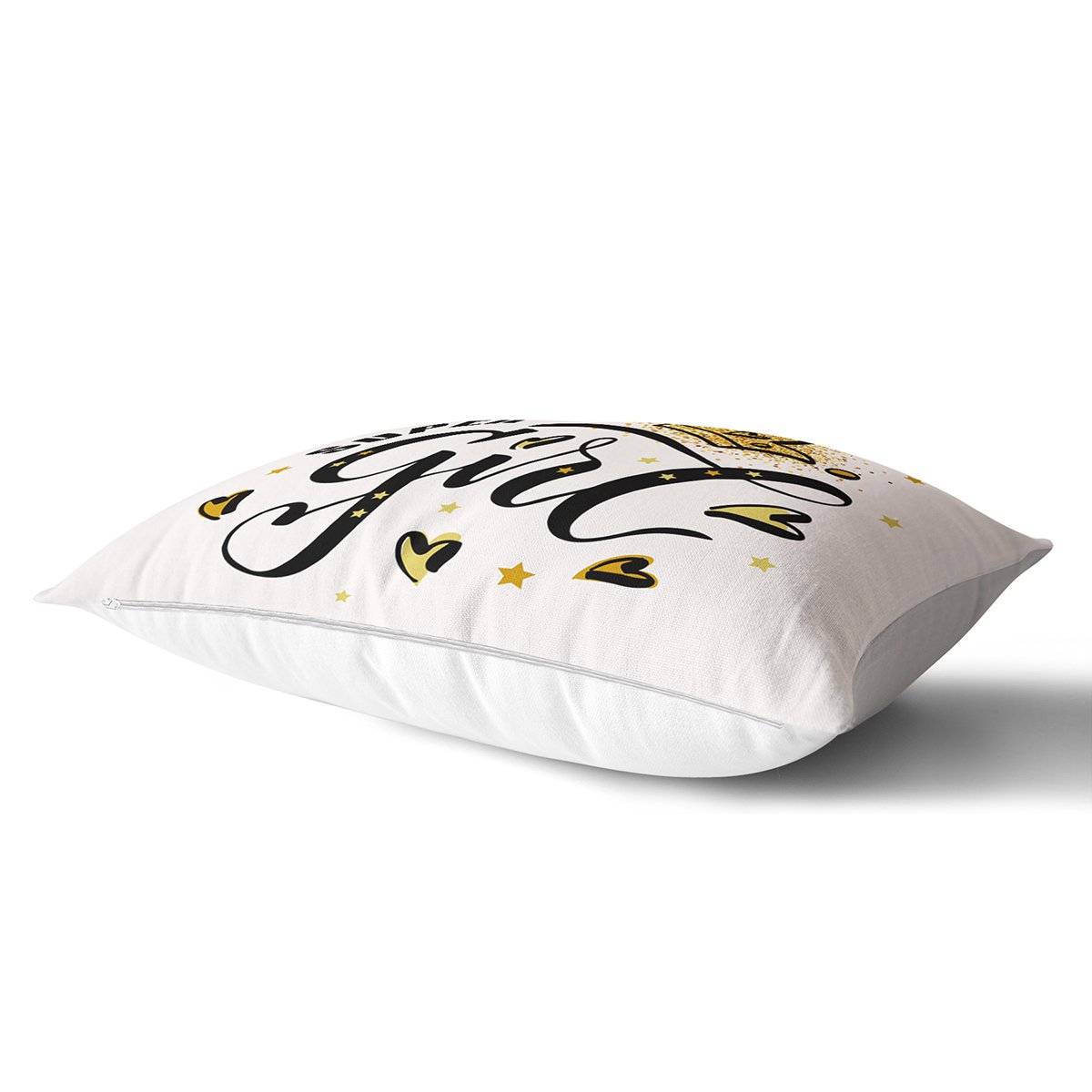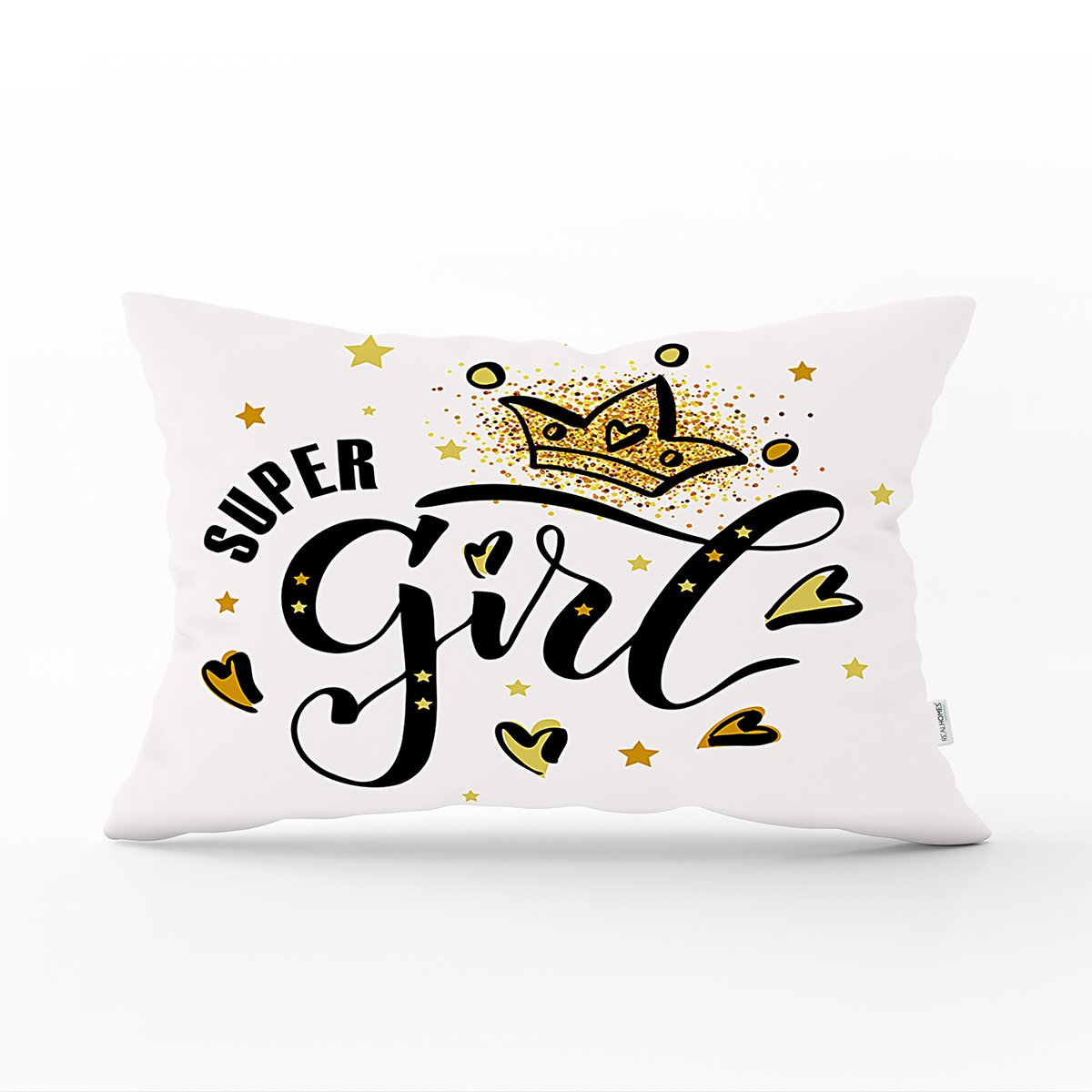 Super Gırl Yazı Desenli Dijital Baskılı Dekoratif Dikdörtgen Kırlent Kılıfı