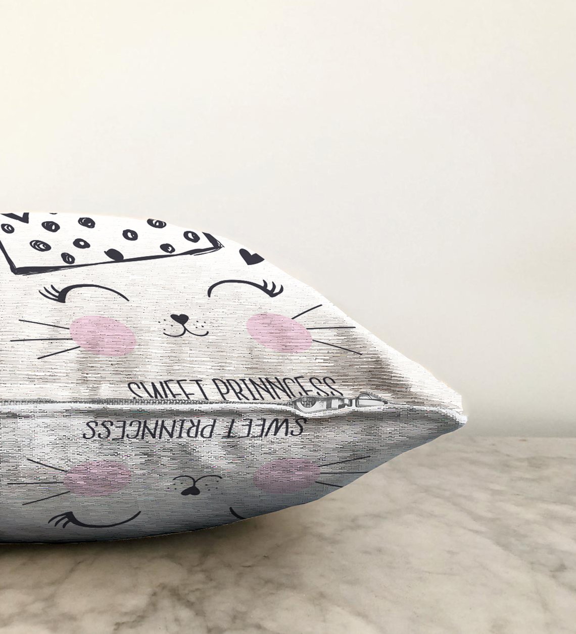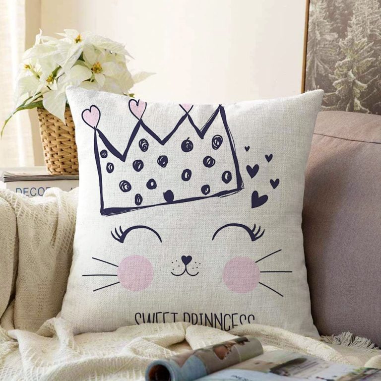 Taç Motifli Kalp Desenli Modern Raşel Yastık Kılıfı