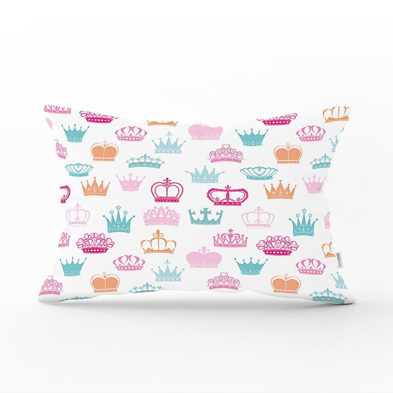Taç Motifli Renkli Dijital Baskılı Dikdörtgen Yastık Kırlent Kılıfı
