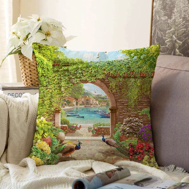 Tavuz Kuşu Dijital Baskılı Dekoratif Raşel Yastık Kırlent Kılıfı