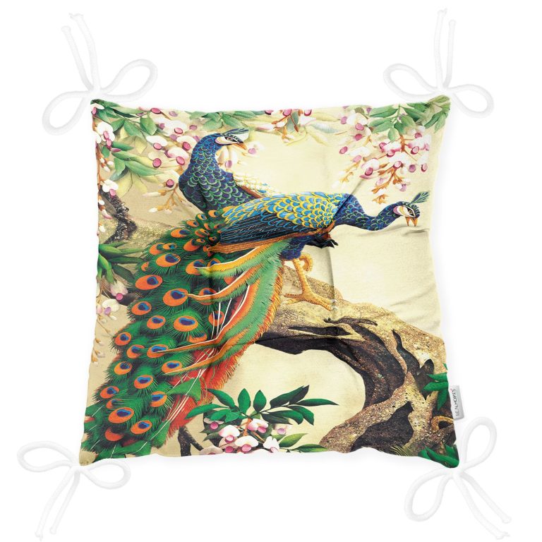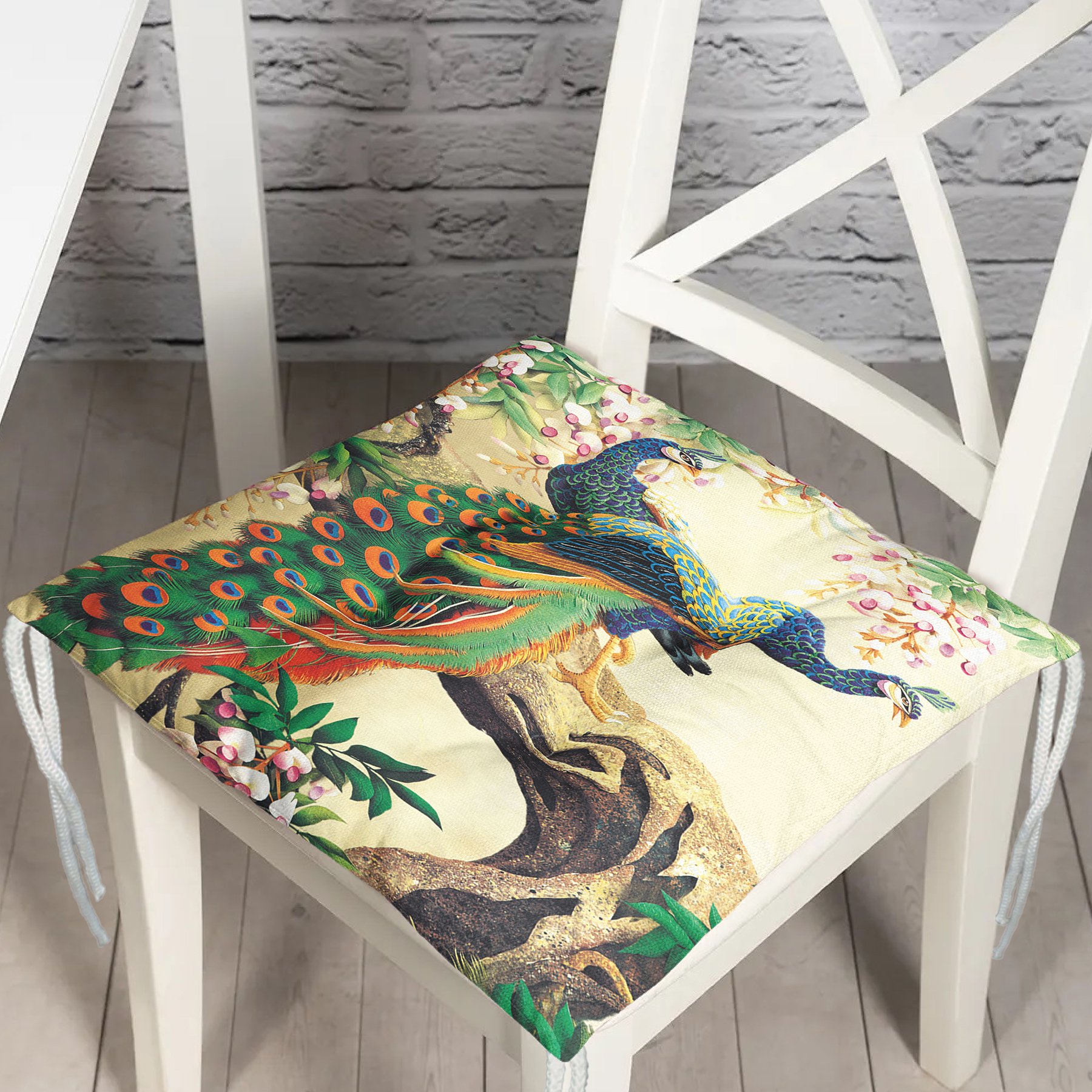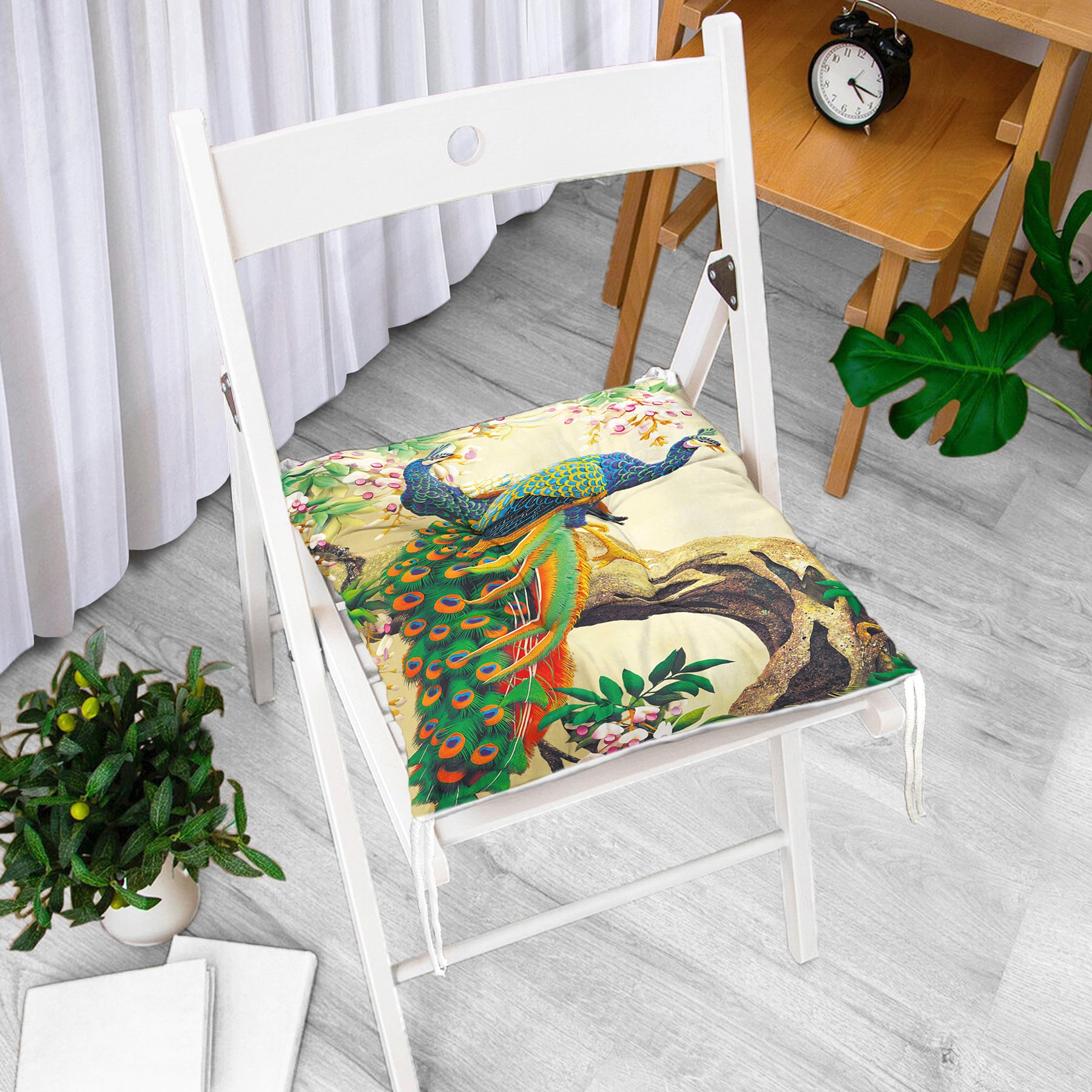 Tavuz Kuşu Dijital Baskılı Pofidik Kare Sandalye Minderi