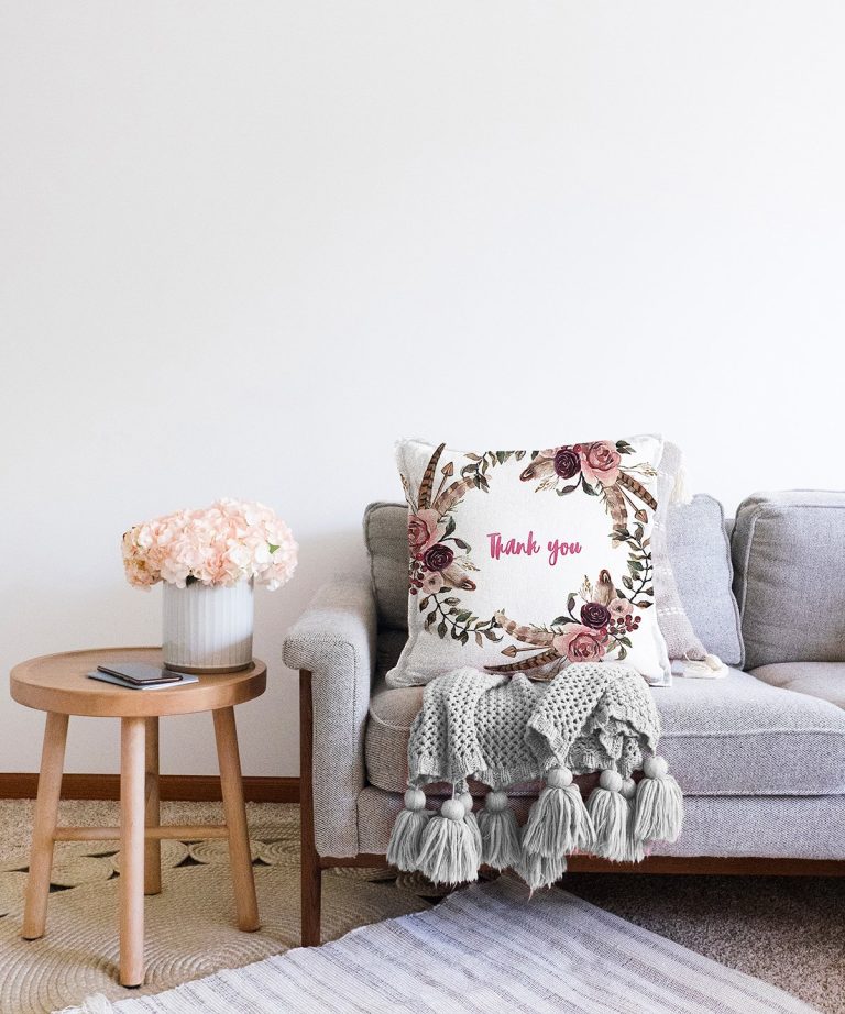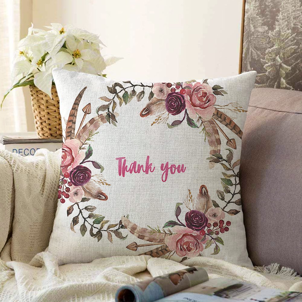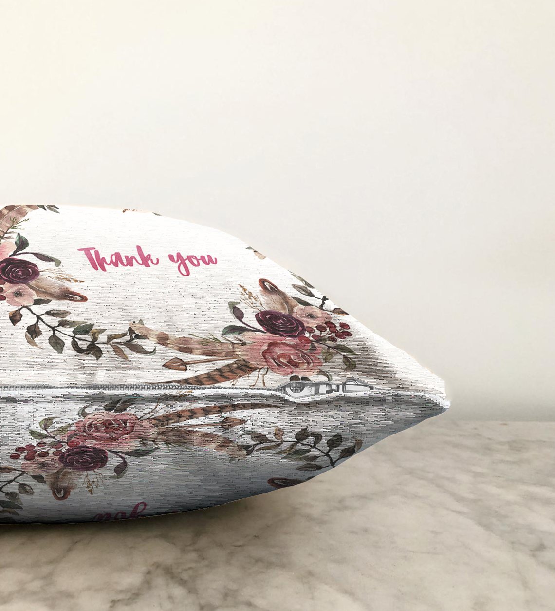 Thank You Dijital Baskılı Raşel Yastık Kırlent Kılıfı