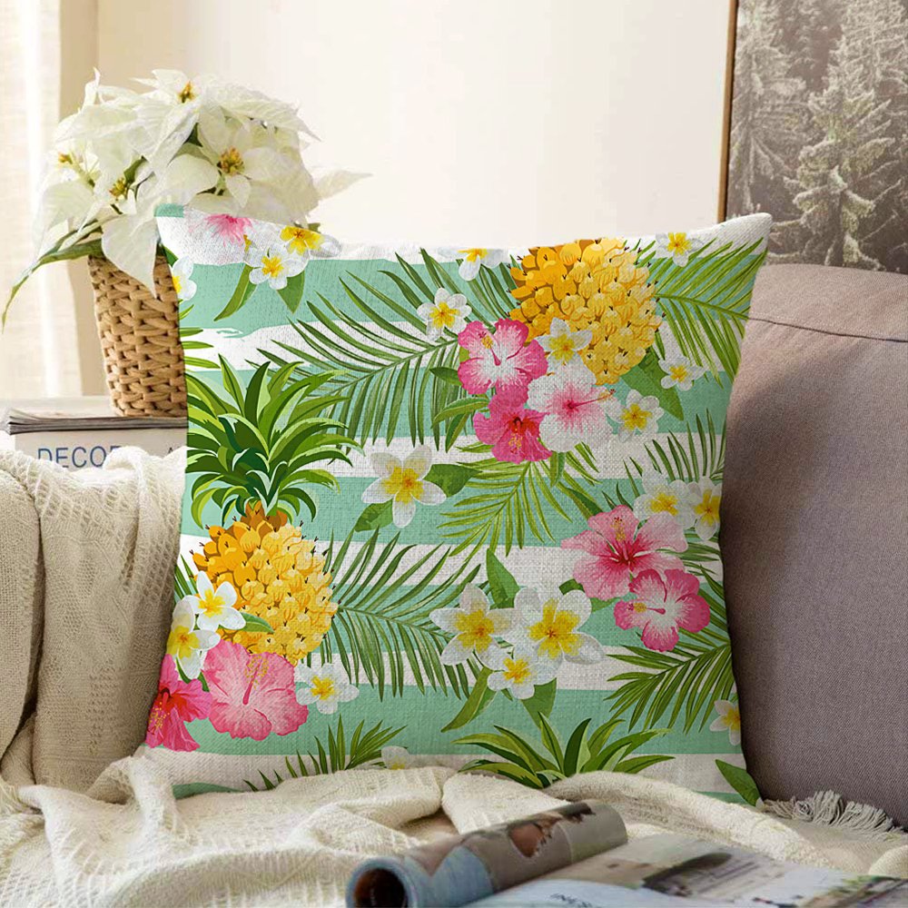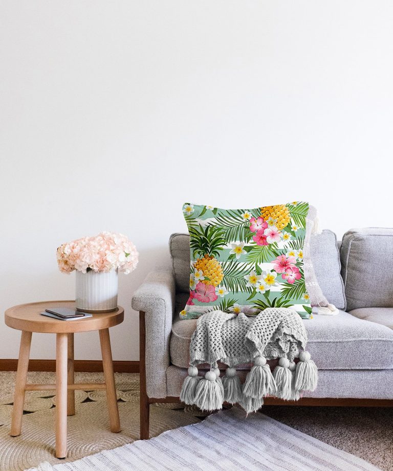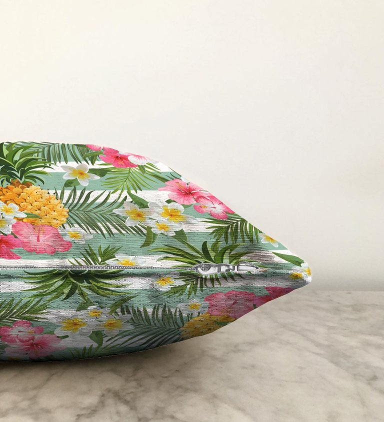 Tropik Bitki Desenli Dijital Baskılı Raşel Yastık Kırlent Kılıfı
