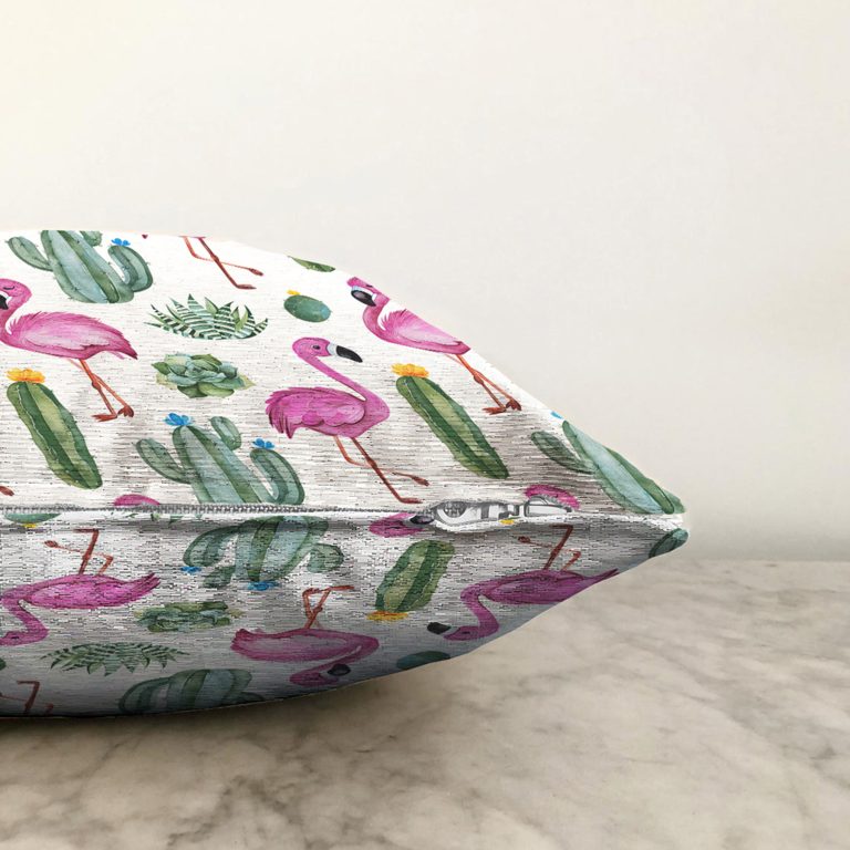 Tropik Kaktüs Flamingo Özel Tasarım Dijital Baskılı Raşel Yastık Kırlent Kılıfı