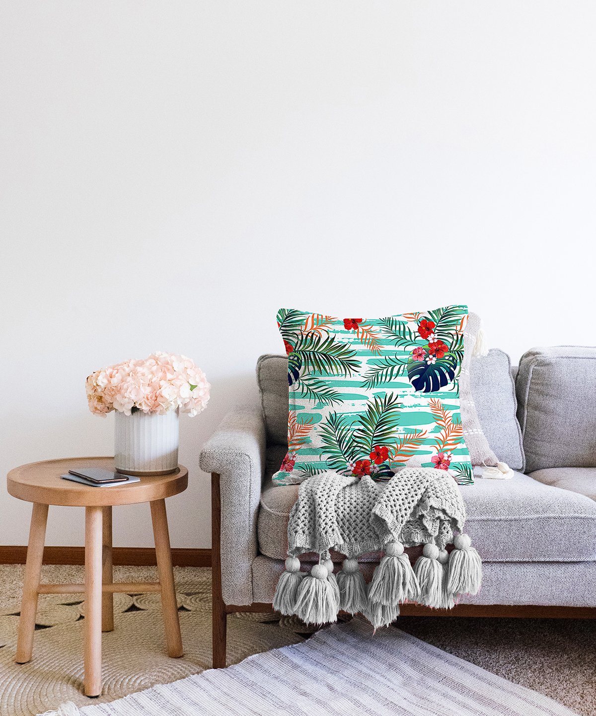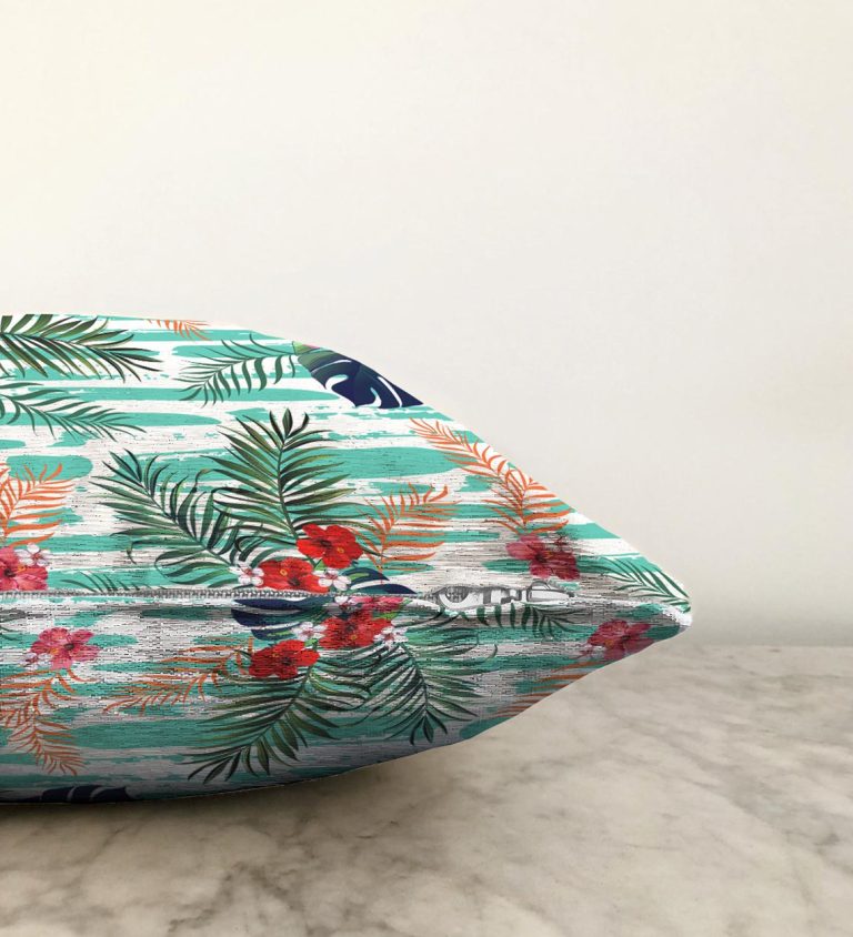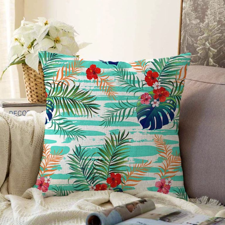Turkuaz Çiçek Şöleni Modern Dijital Baskılı Raşel Kırlent Kılıfı