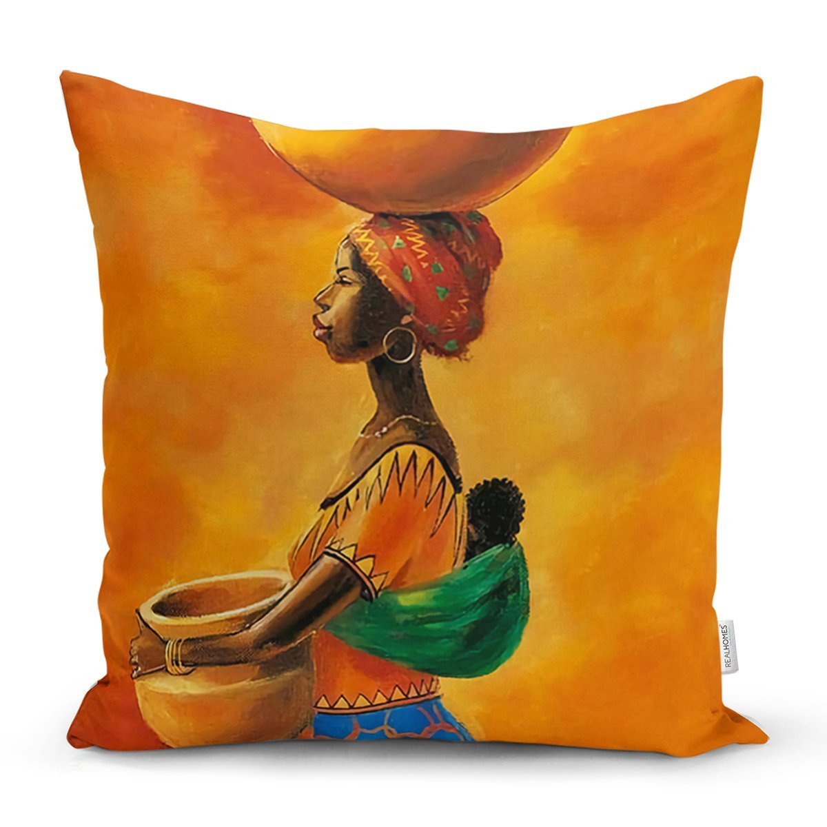 Turuncu Afrikan Women Tasarımlı Dijital Baskılı Yastık Kırlent Kılıfı