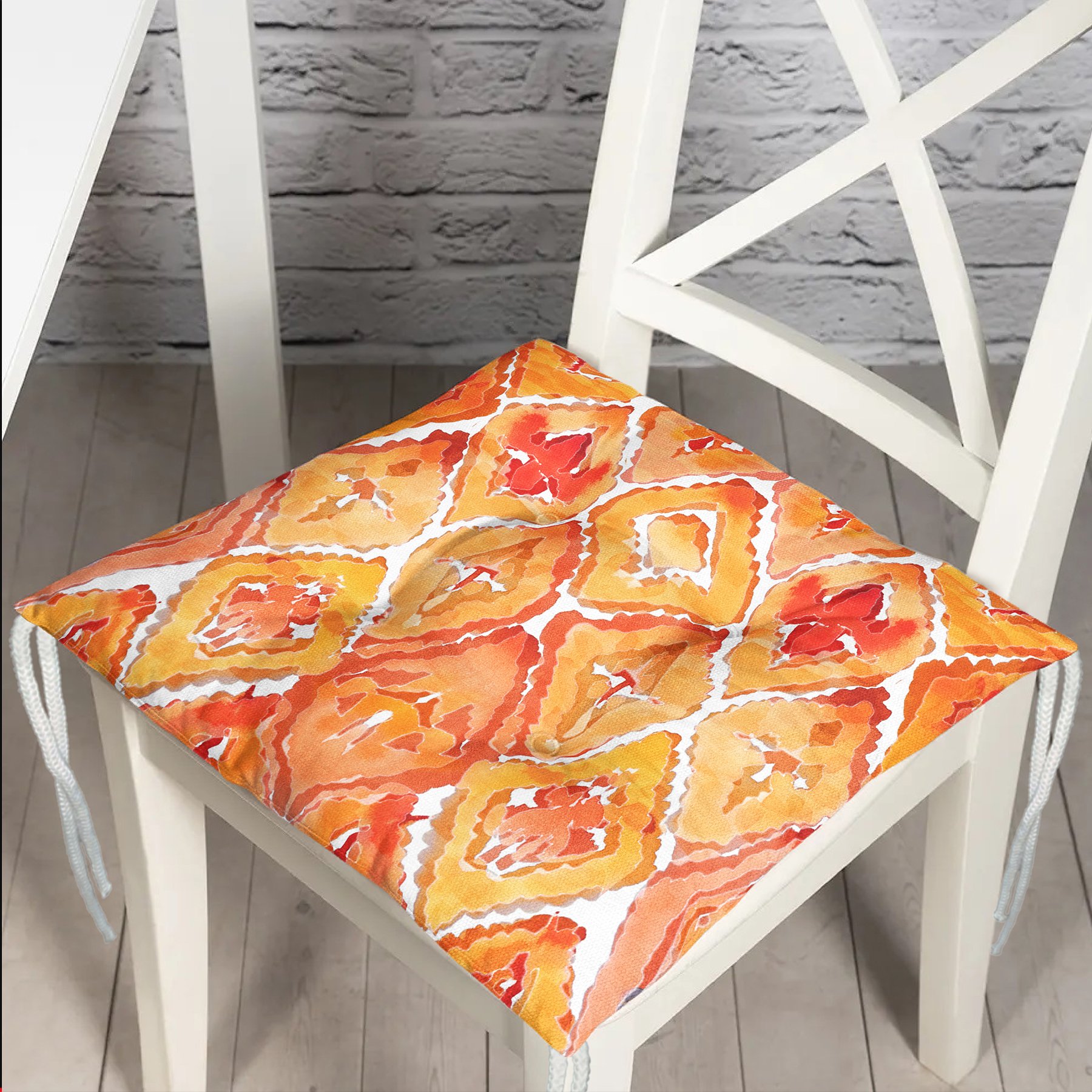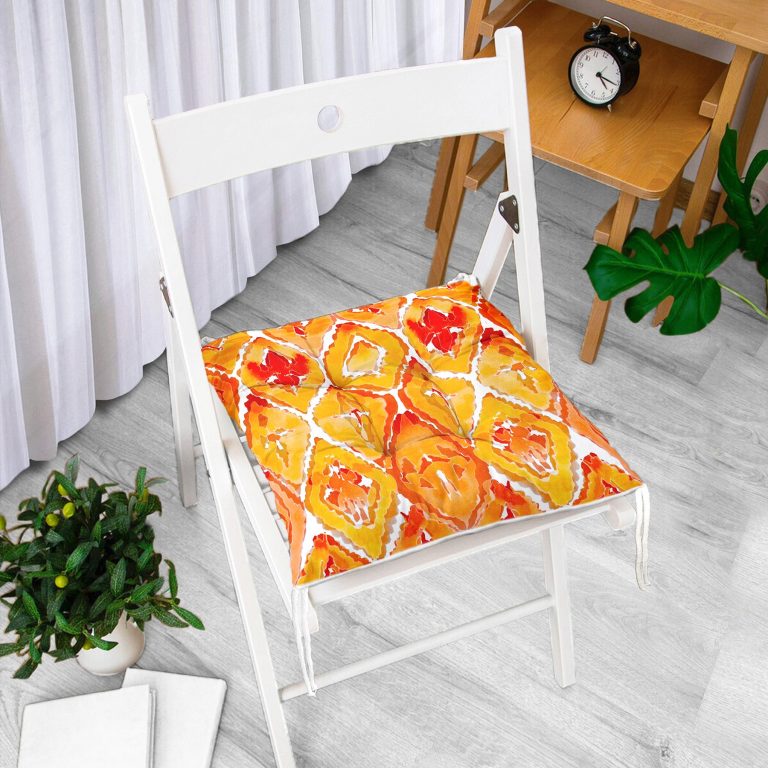 Turuncu Damask Tasarımlı Dijital Baskılı Pofidik Sandalye Minderi