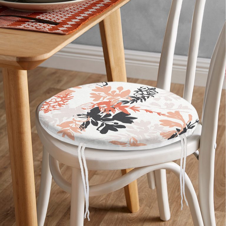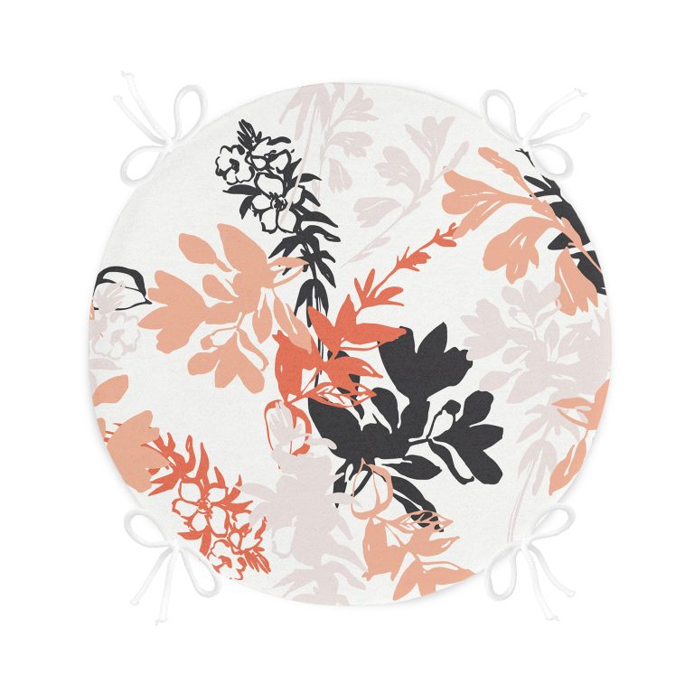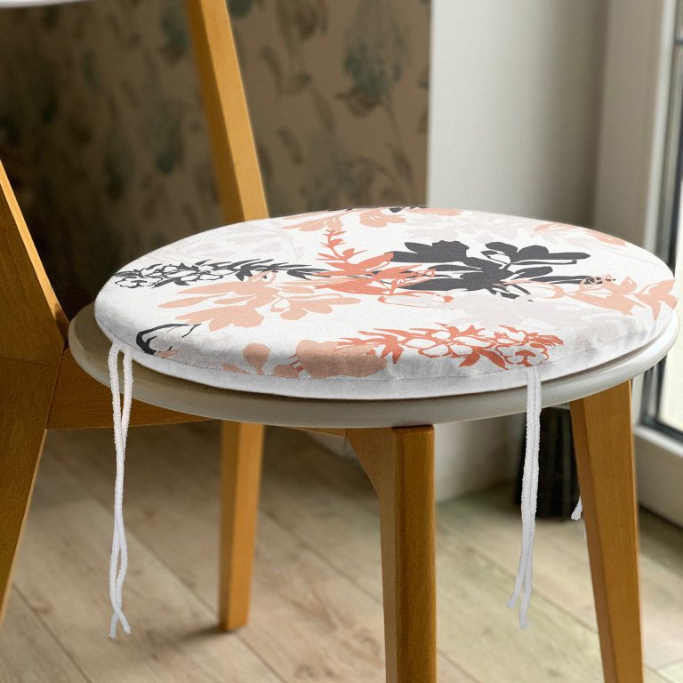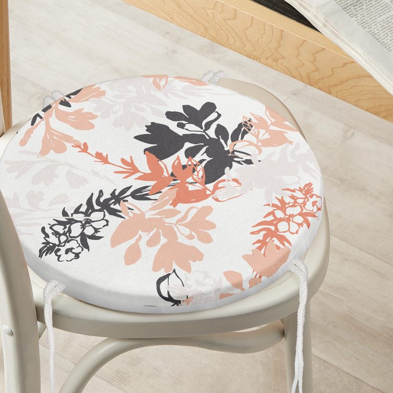 Turuncu Siyah Renkli Yaprak Dijital Baskılı Özel Tasarım Yuvarlak Fermuarlı Sandalye Minderi