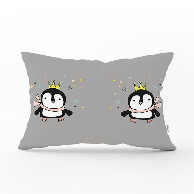 Uçan Sevimli Penguen Tasarımlı Bebek Odası Dikdörtgen Yastık Kılıfı