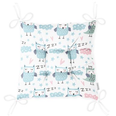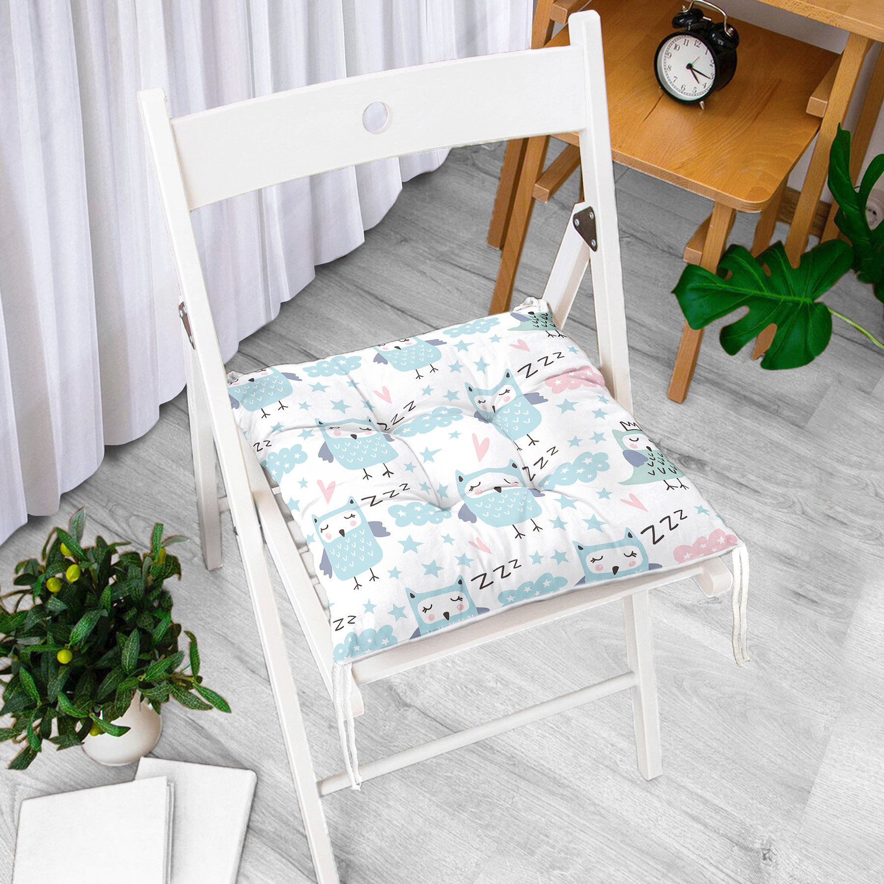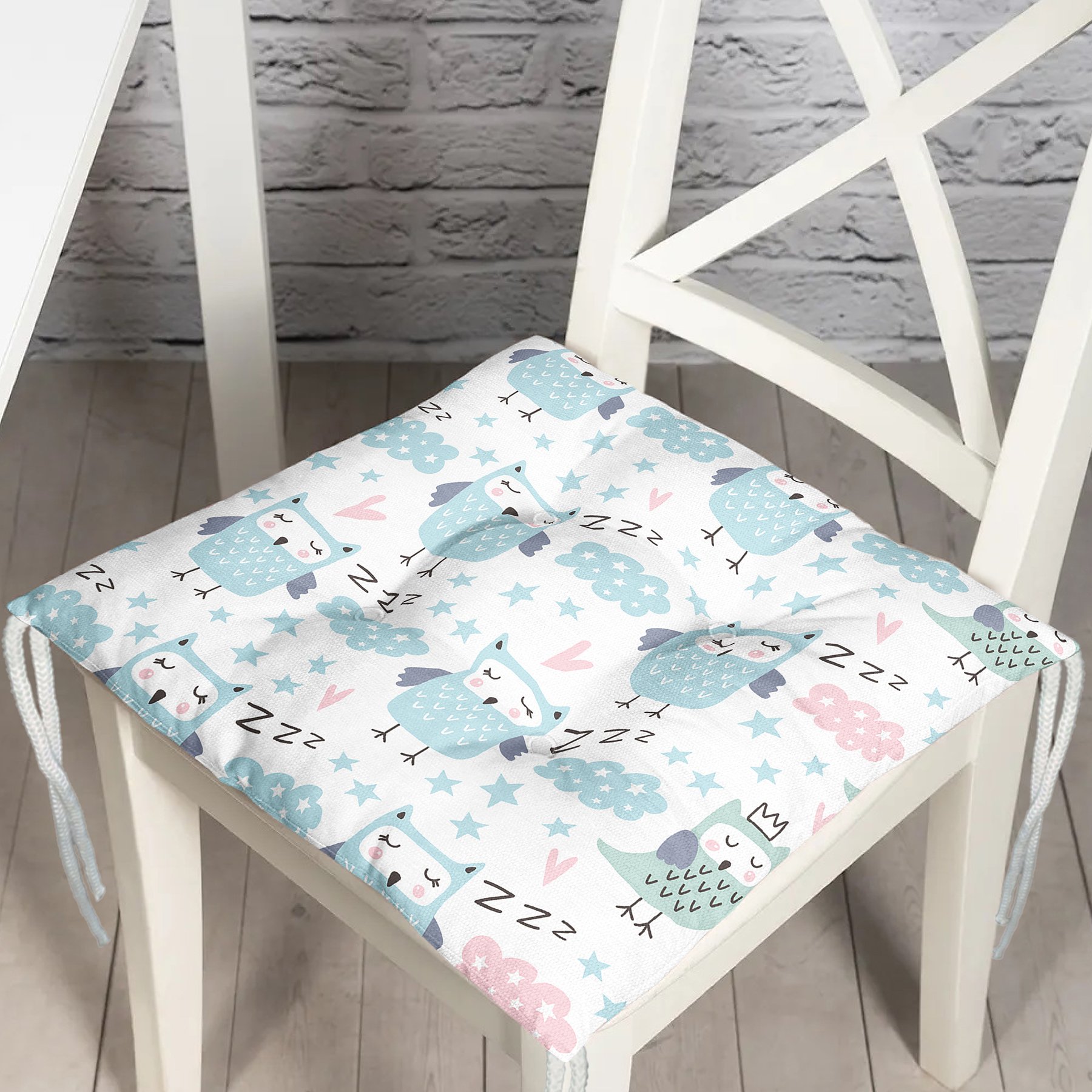 Uyuyan Baykuş Motifli Dijital Baskılı Özel Tasarım Modern Pofidik Sandalye Minderi