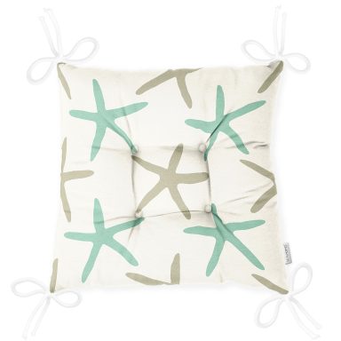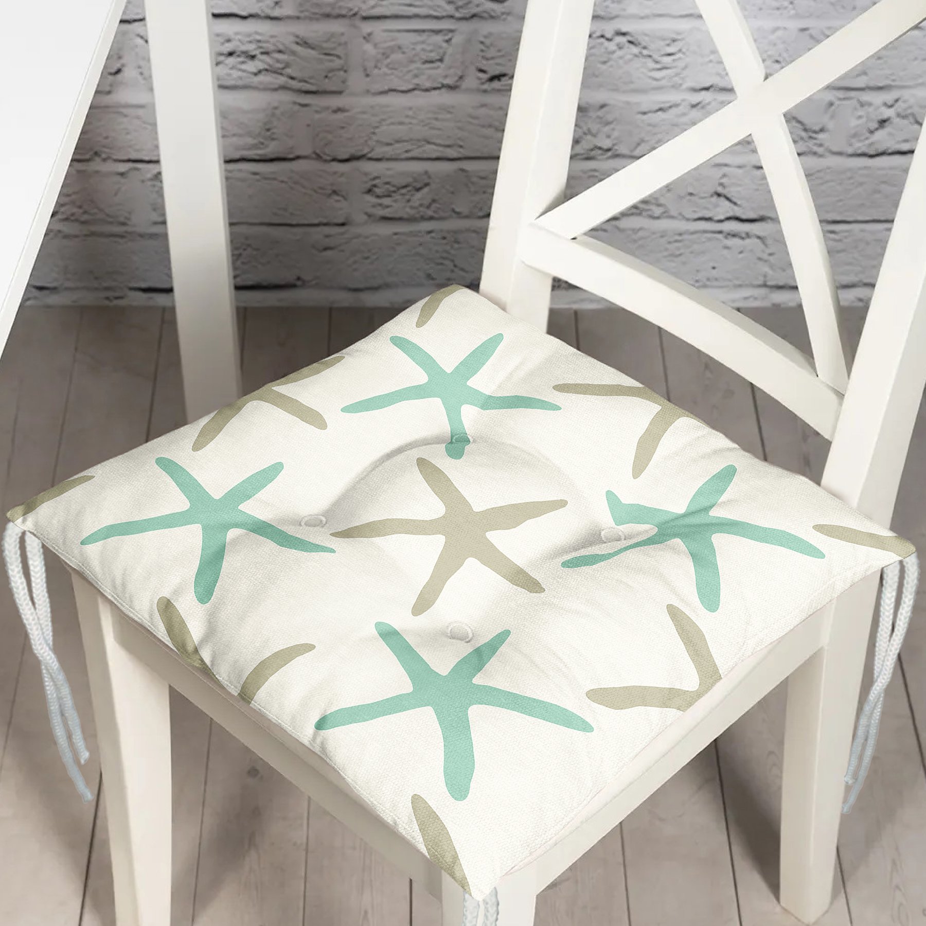 Vizon Zeminde Deniz Yıldızı Motifli Dijital Baskılı Modern Pofidik Sandalye Minderi