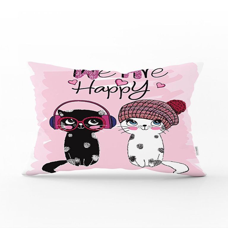 We Are Happy Kedicikler Modern Dikdörtgen Yastık Kırlent Kılıfı
