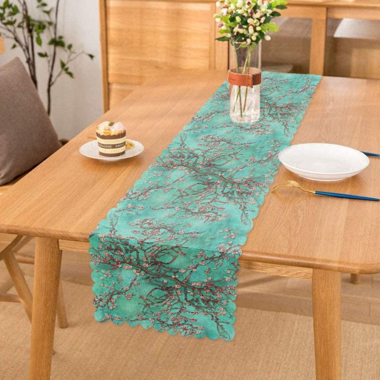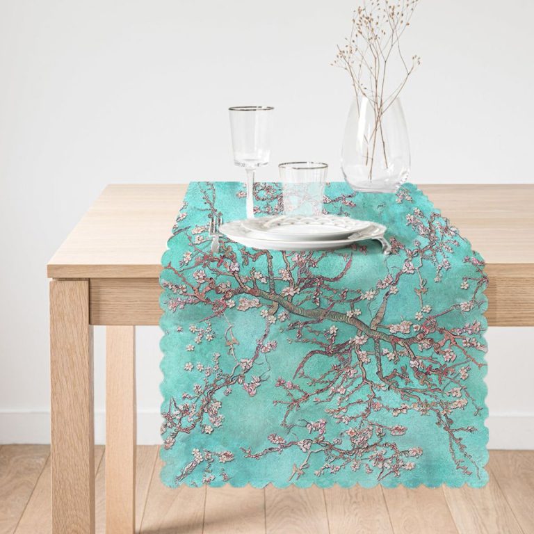 Yağlı Boya Yeşil Ağaç Motifleri Dijital Baskılı Özel Tasarım Runner