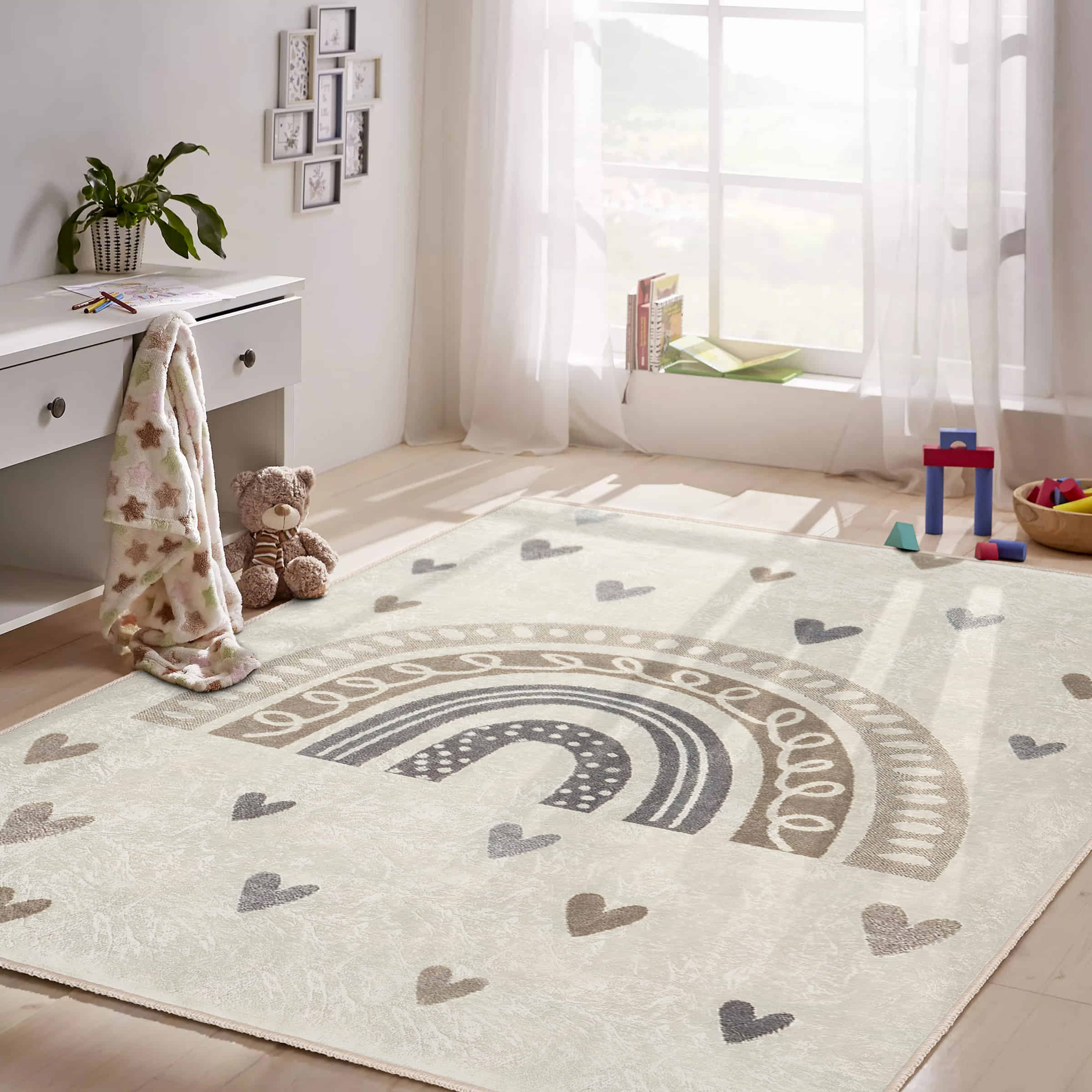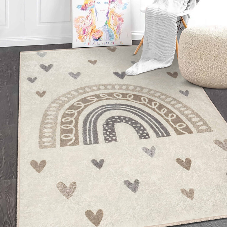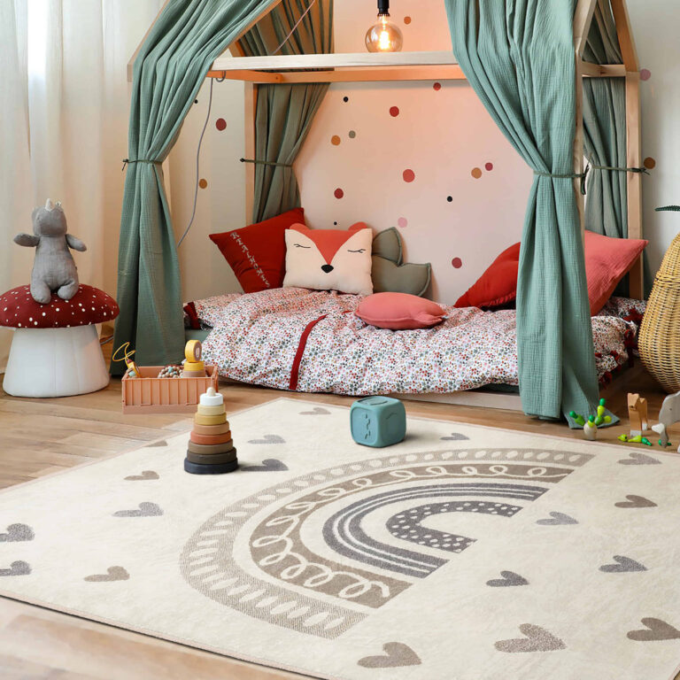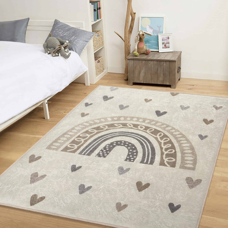 Yansıtıcı Renklerle Neşeli Kemer Desenli Dikdörtgen Çocuk Halısı – Kaymaz Tabanlı ve Yıkanabilir