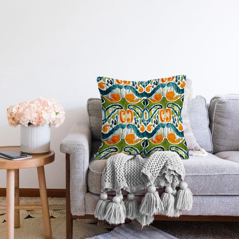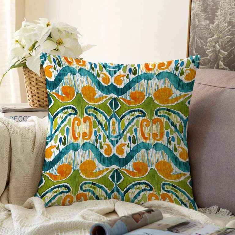 Yeşil Damask Tasarımlı Dijital Baskılı Dekoratif Raşel Yastık Kırlent Kılıfı