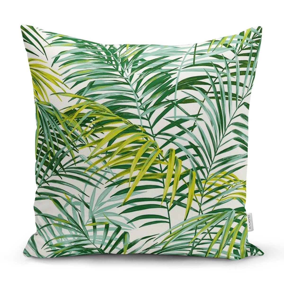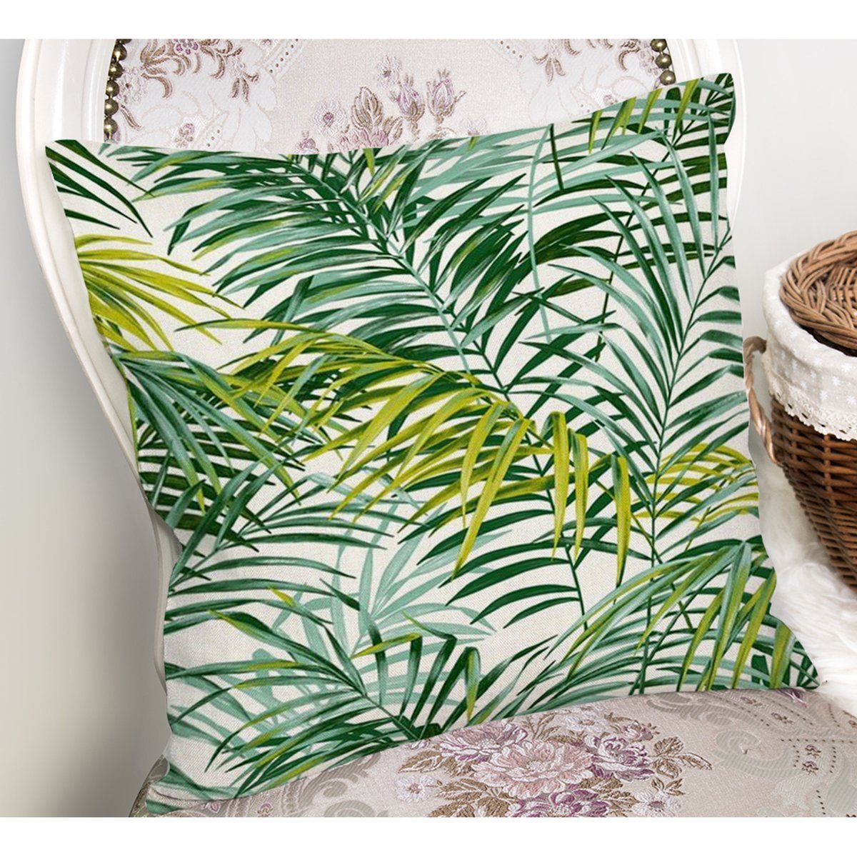 Yeşil Palmiye Yaprakları Özel Tasarımlı Dekoratif Yastık Kırlent Kılıfı