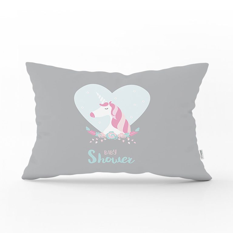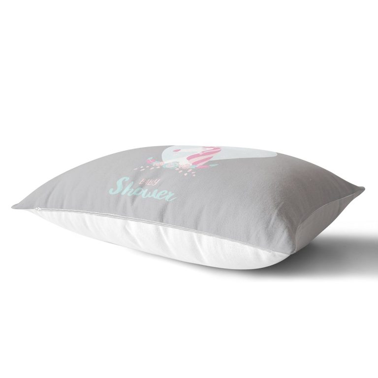 Yeşil Pembe Çizgili Baby Shower Kuğu Tasarımlı Çocuk Odası Dikdörtgen Yastık Kılıfı